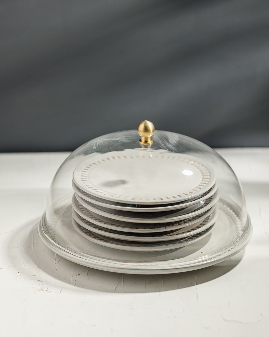 This Pottery Dessert Set brings elegance to your table with a set of six dessert plates, each crafted with care and designed to complement any occasion. The set includes a serving plate, perfect for presenting your desserts in style, and an acrylic cover with a gold-plated brass knob for a refined finishing touch. Combining timeless pottery with luxurious accents, this set is both functional and beautifully crafted to elevate your dining experience.