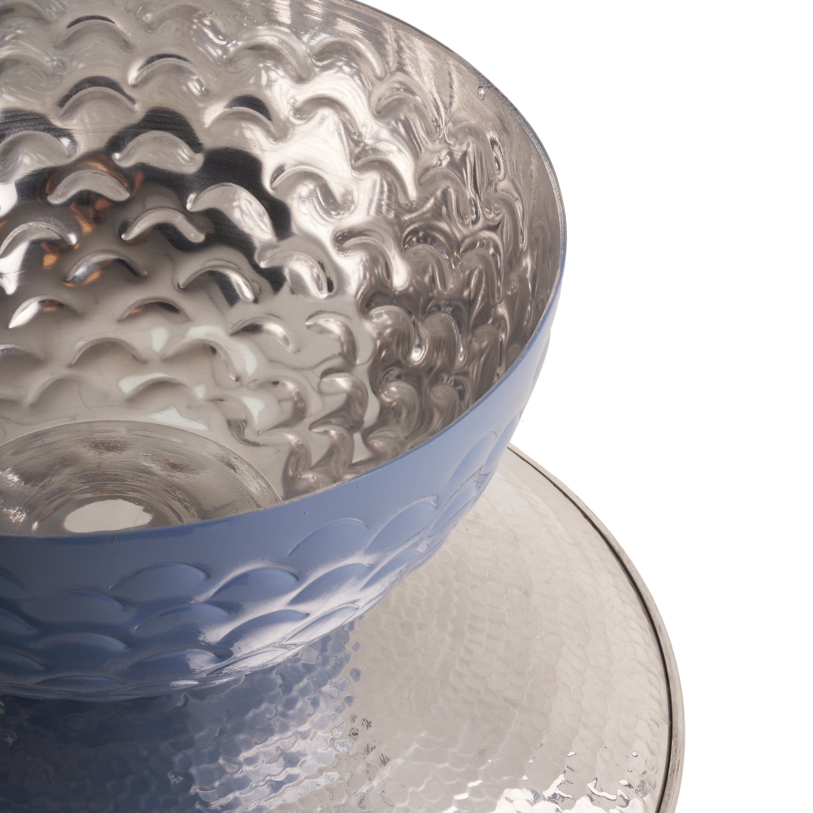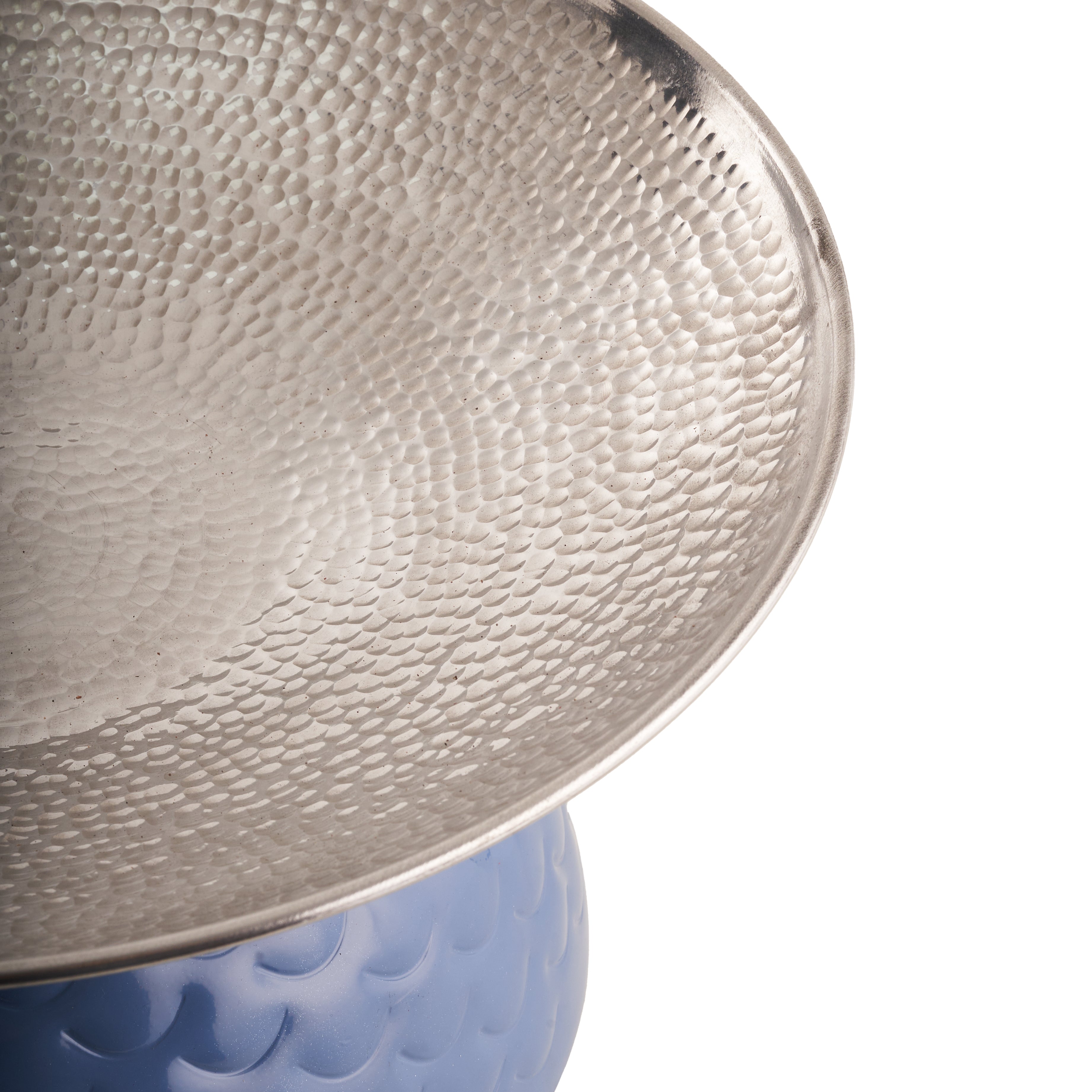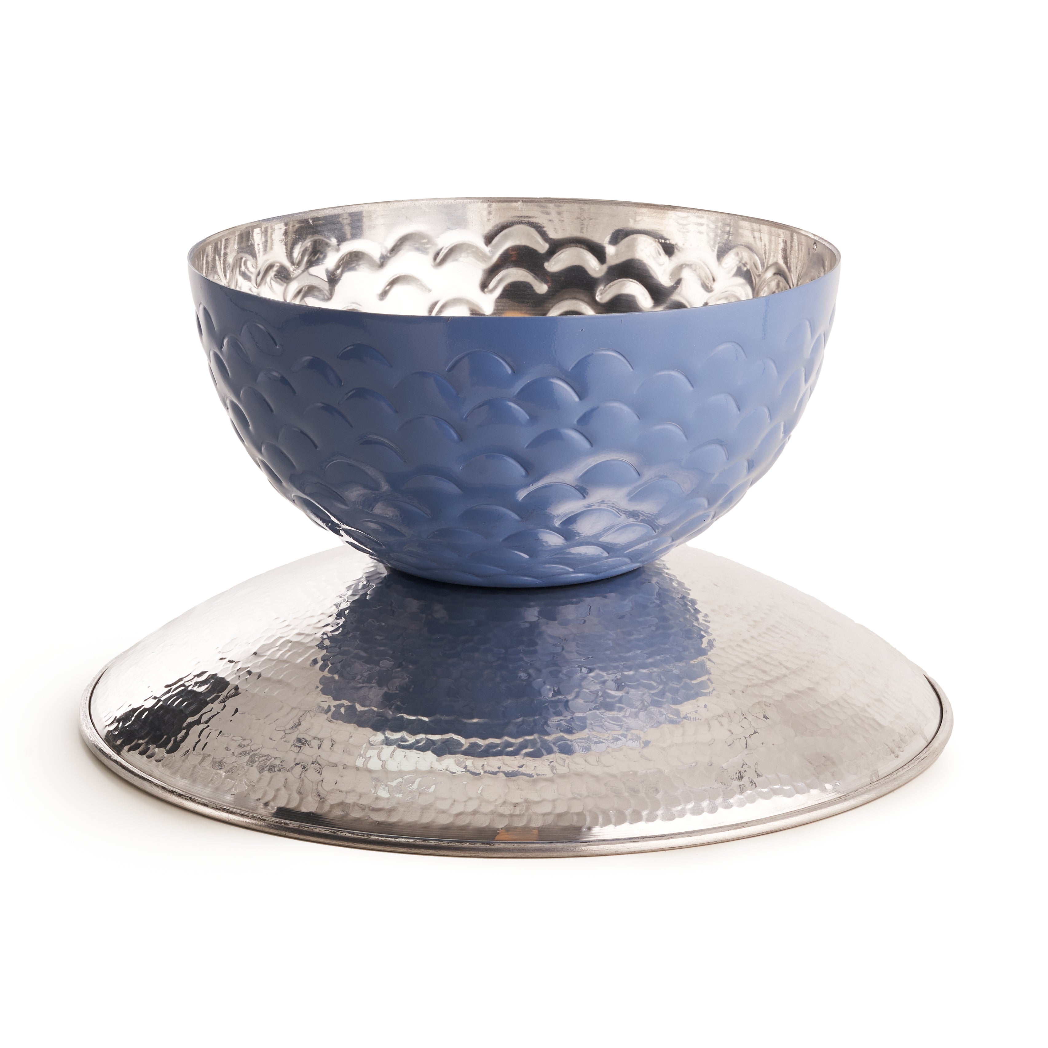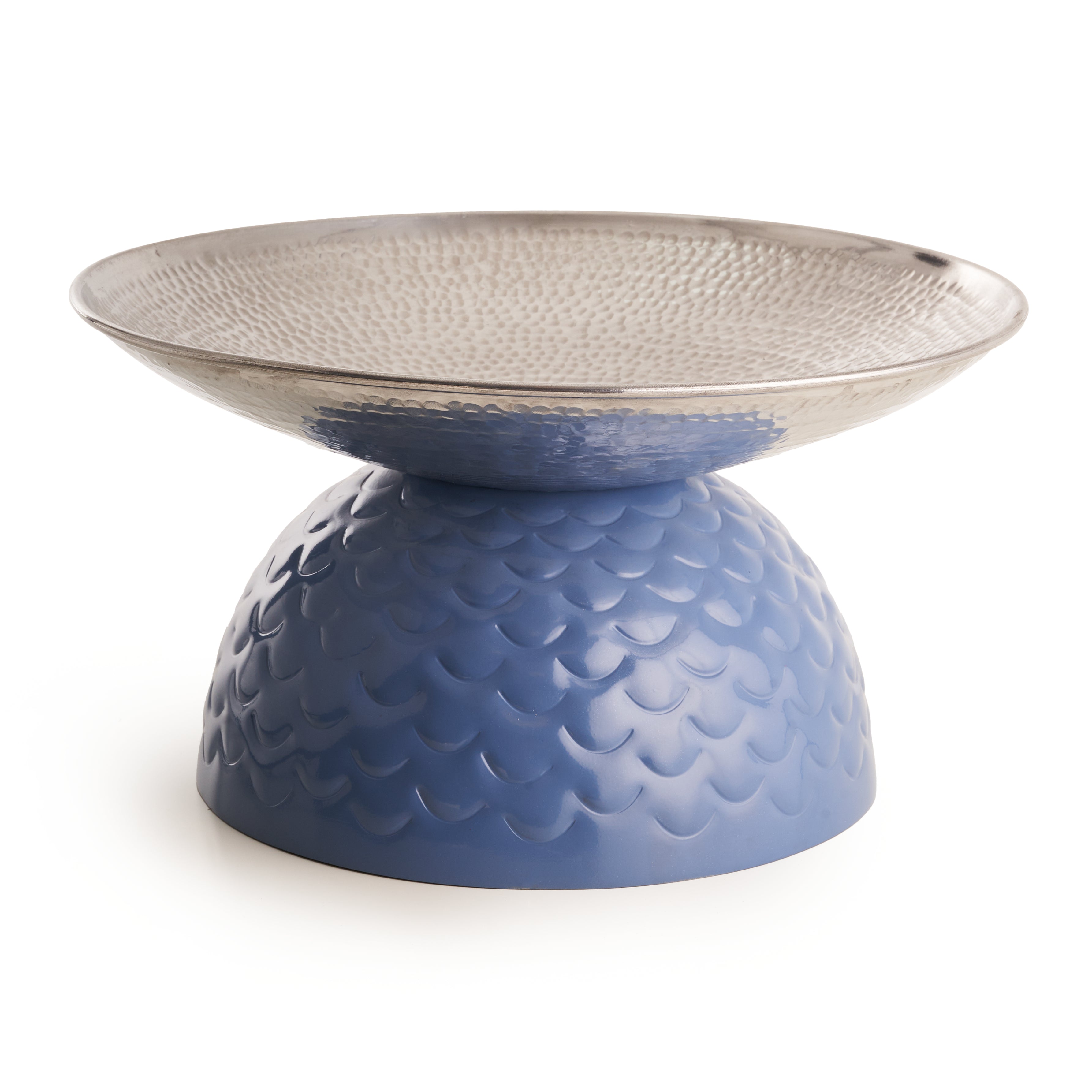 Crafted with a hammered aluminum finish and a base embossed with seashell-inspired patterns in soft white or serene blue, this piece is both decorative and functional. Whether you're serving desserts, fruits, or creating a striking centerpiece, this bowl adapts beautifully to your space.