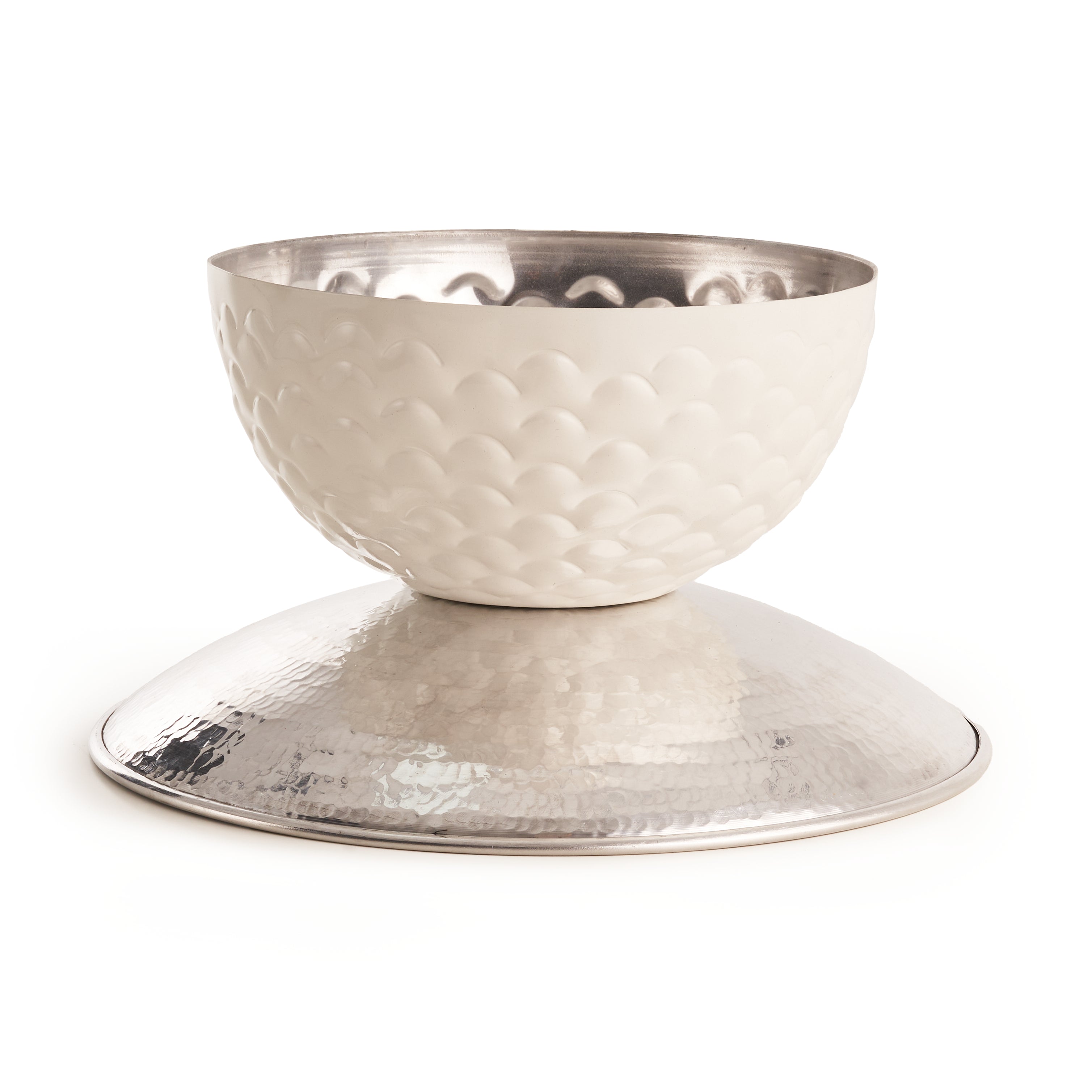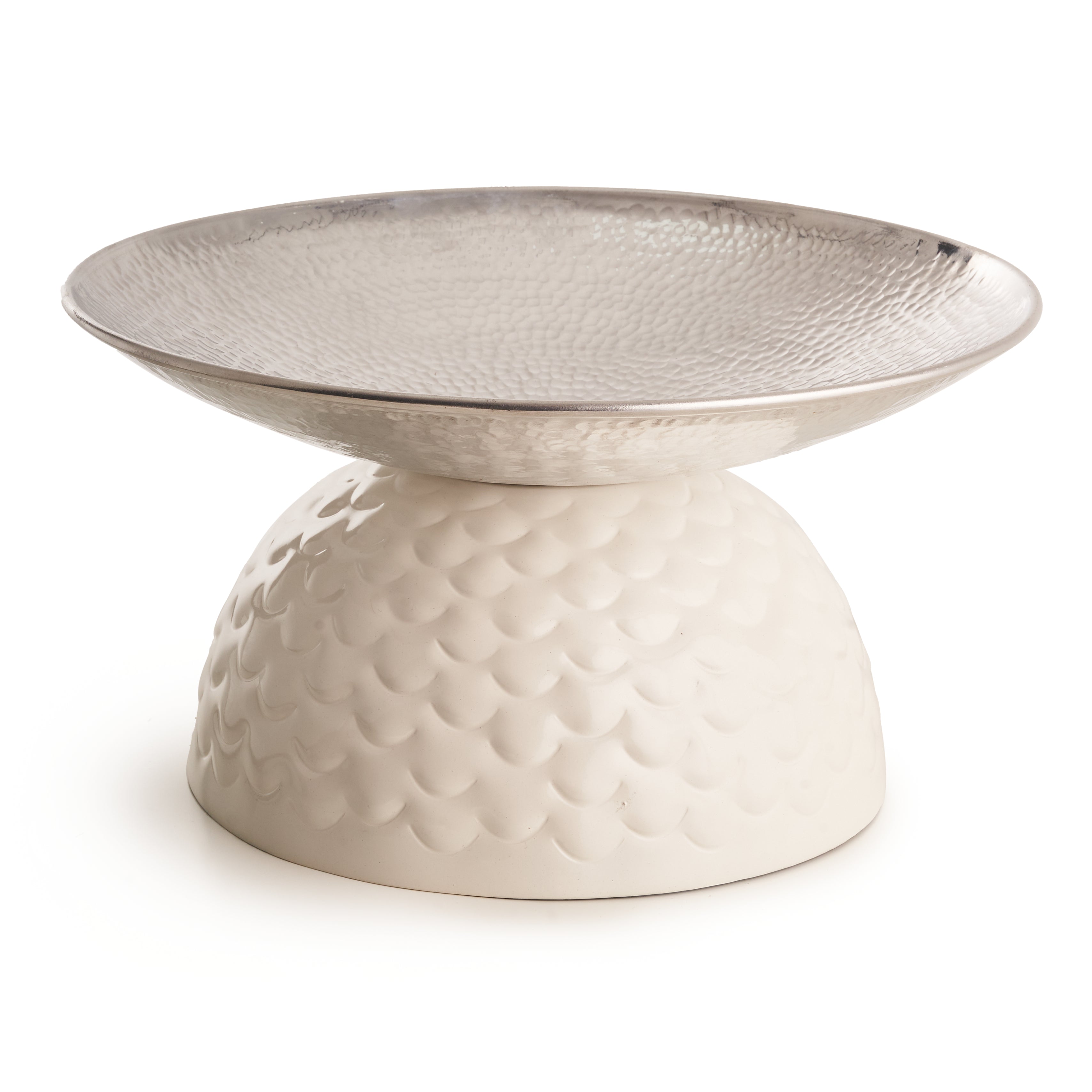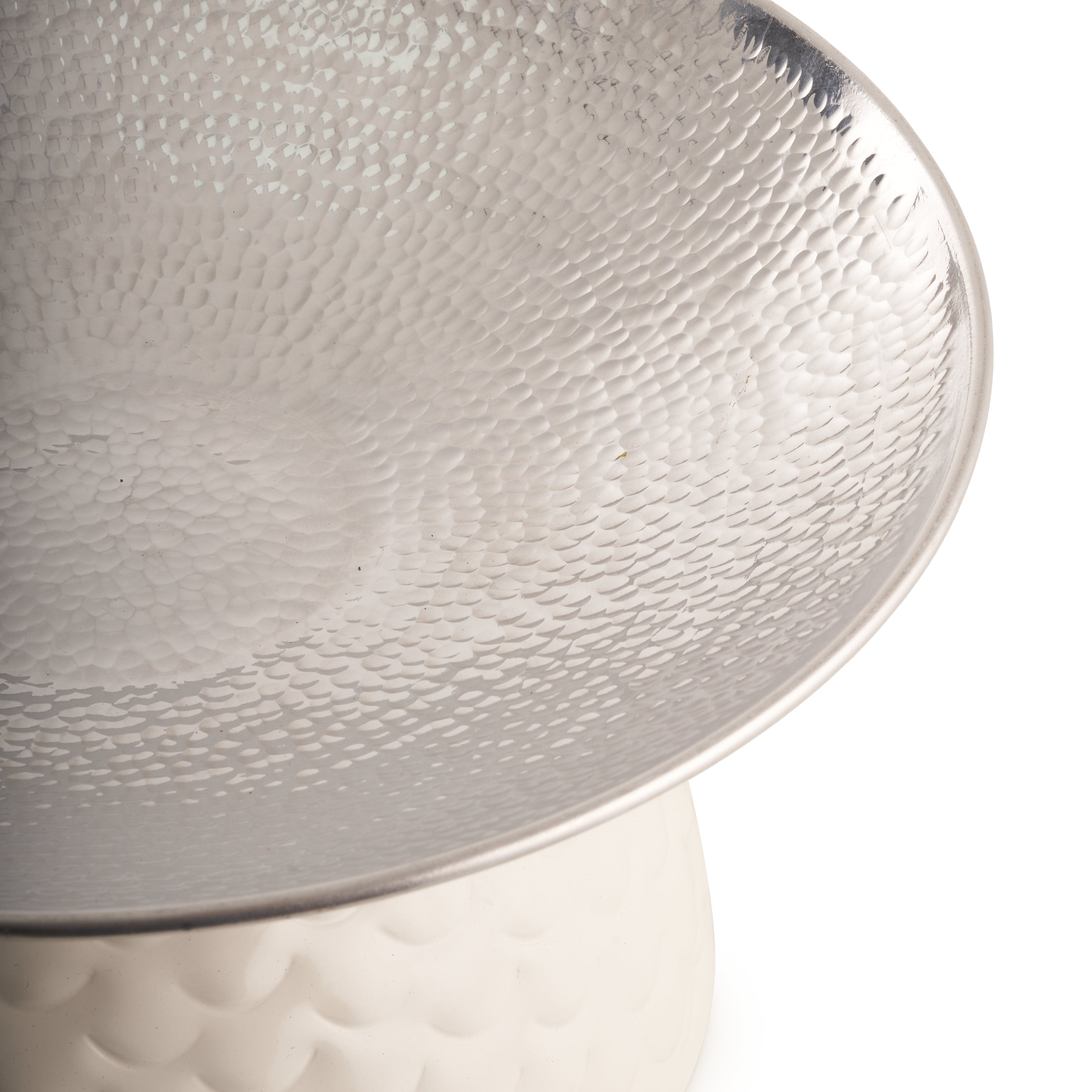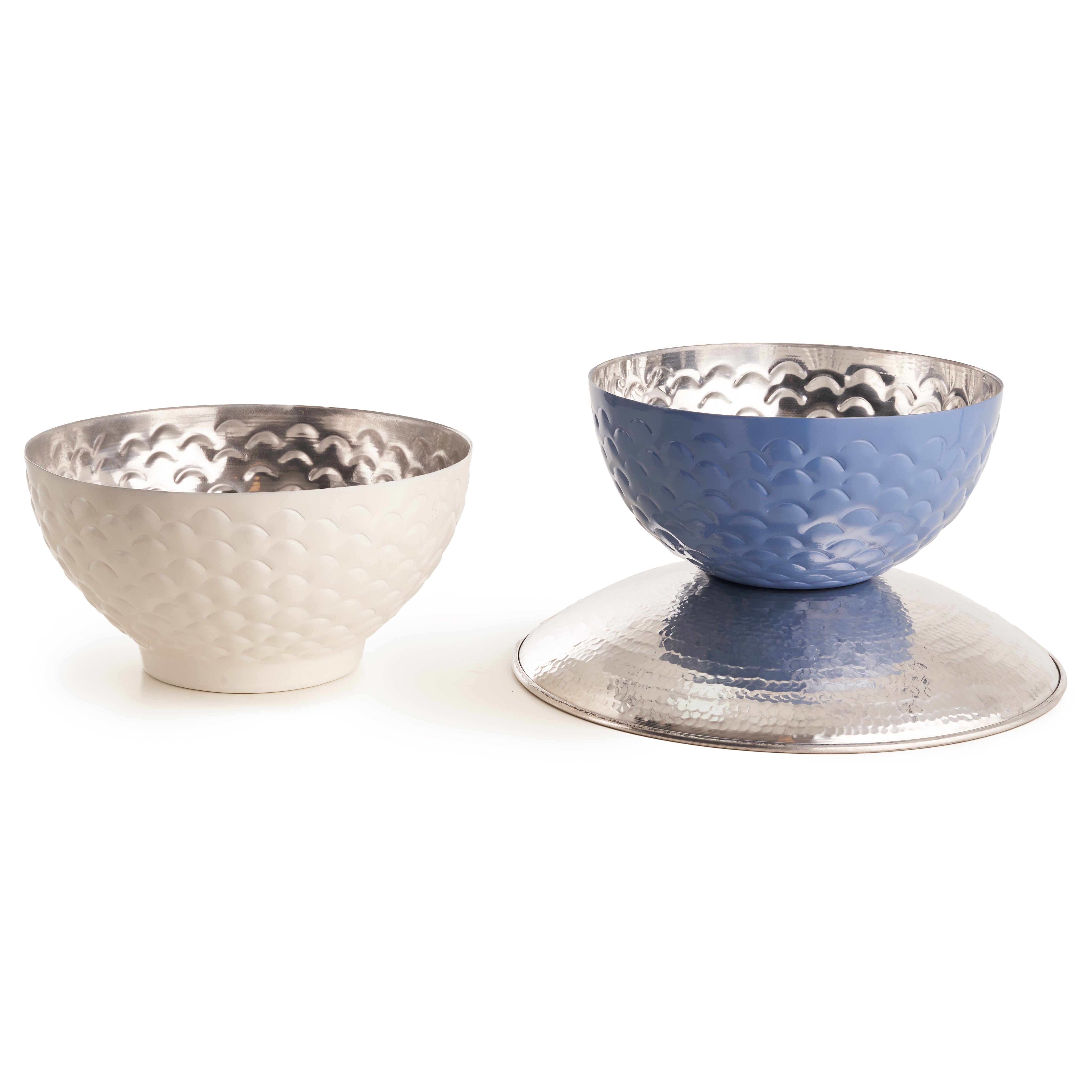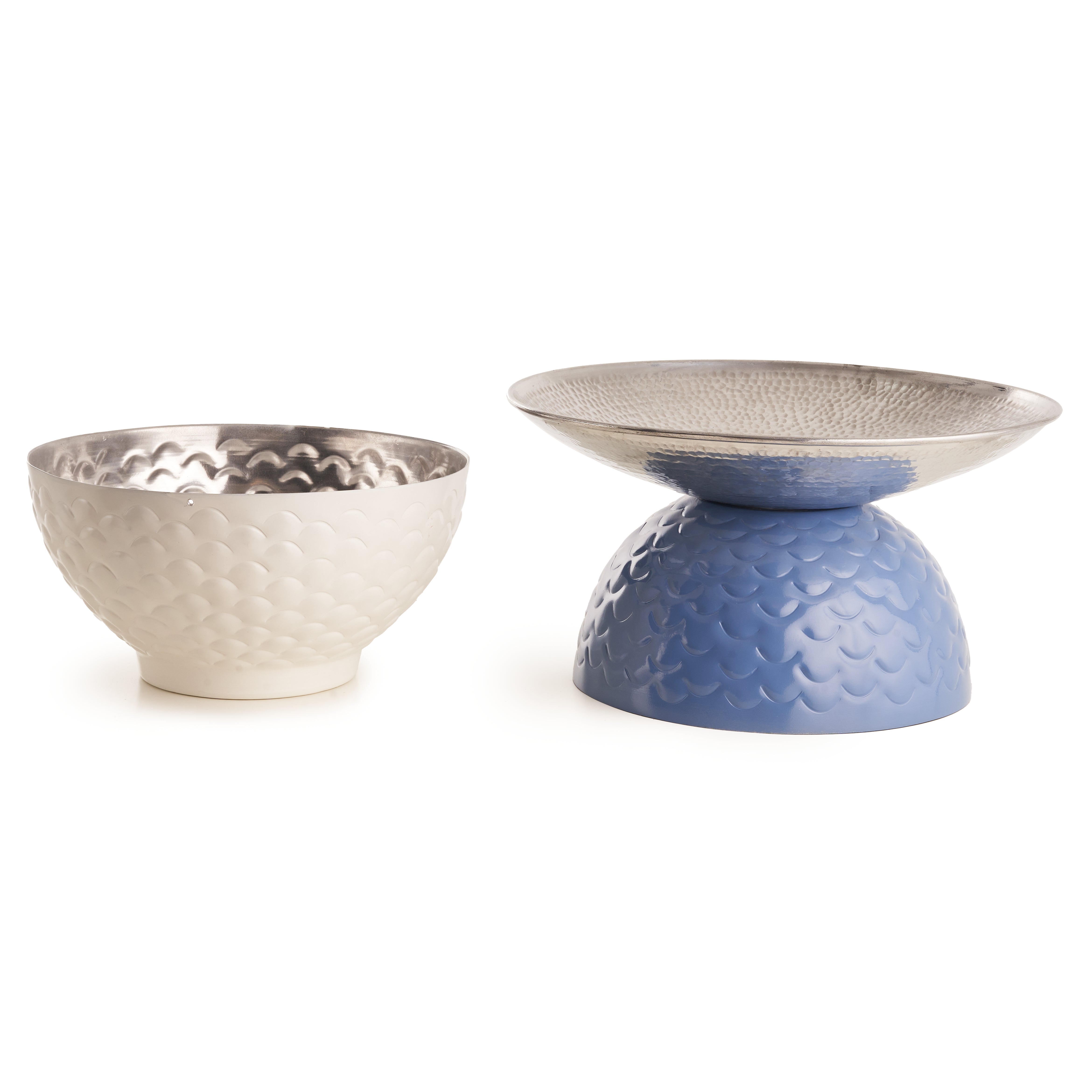 Crafted with a hammered aluminum finish and a base embossed with seashell-inspired patterns in soft white or serene blue, this piece is both decorative and functional. Whether you're serving desserts, fruits, or creating a striking centerpiece, this bowl adapts beautifully to your space.