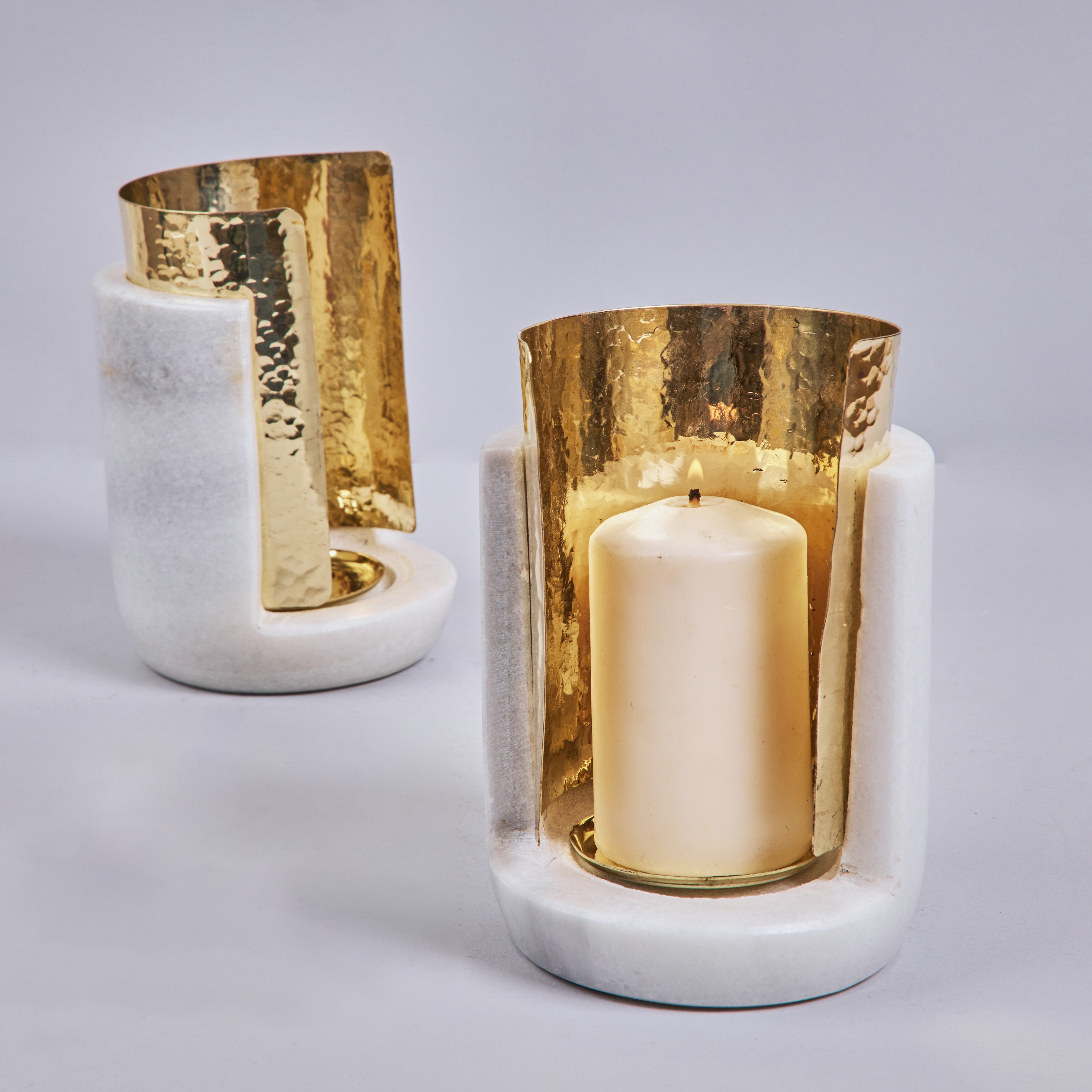 This elegant candle holder, with a marble base and gold-plated brass accessories, combines timeless beauty with the luxurious sheen of gold. Perfect for adding a sophisticated touch to any space.