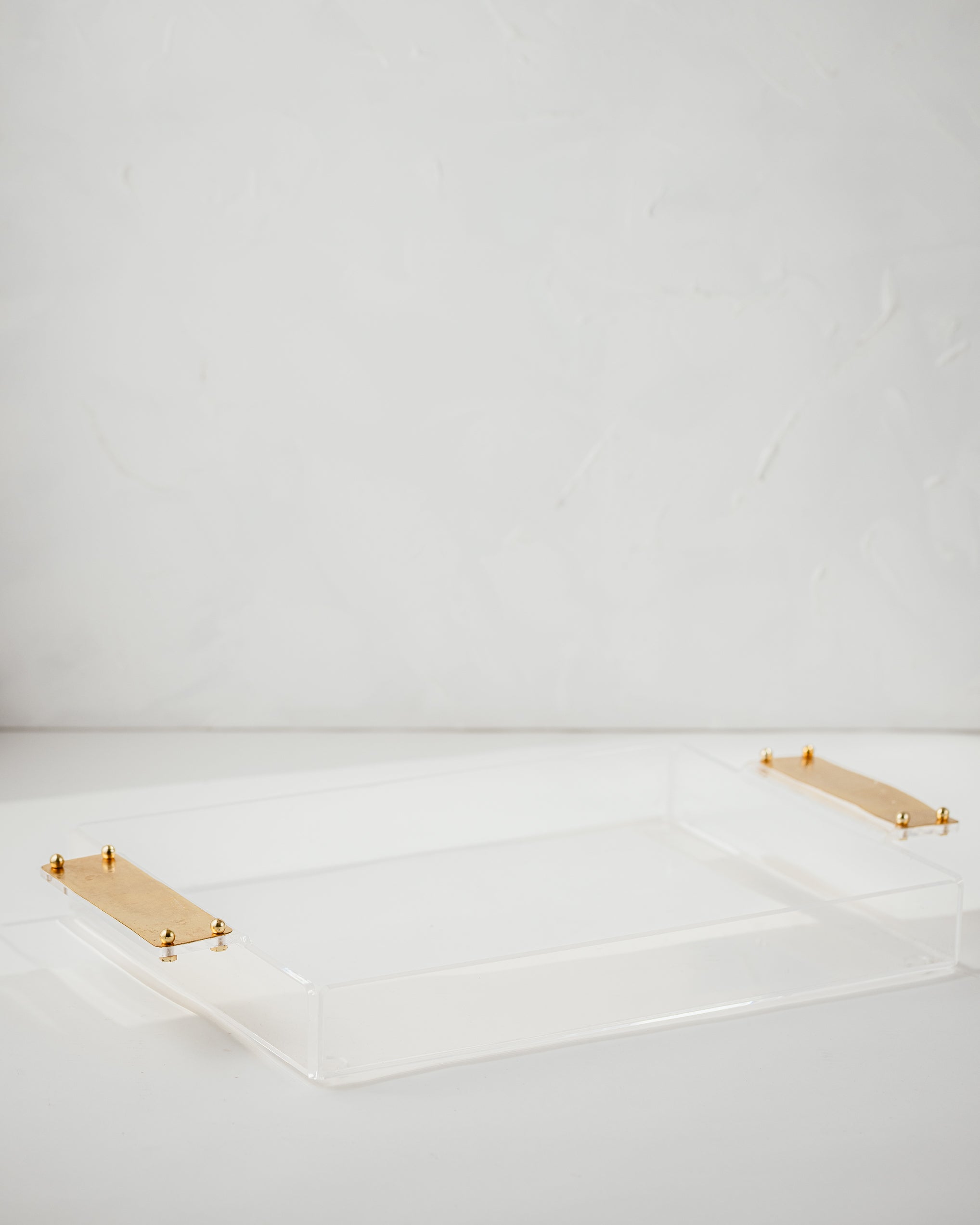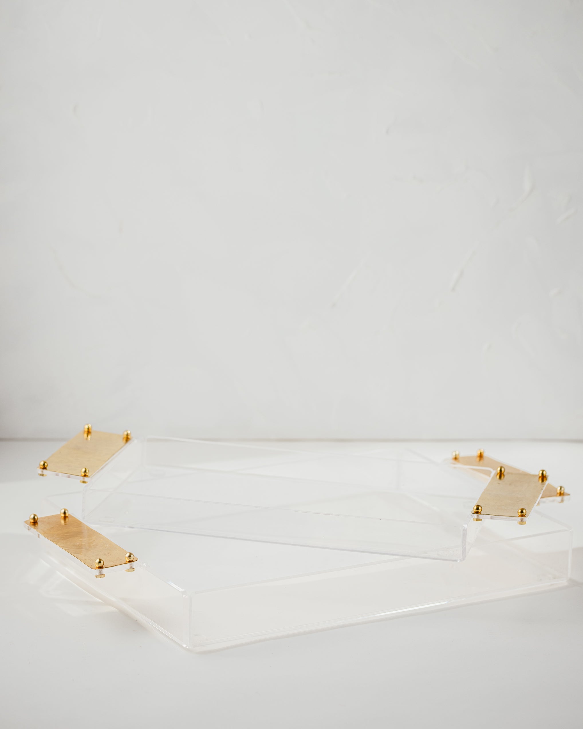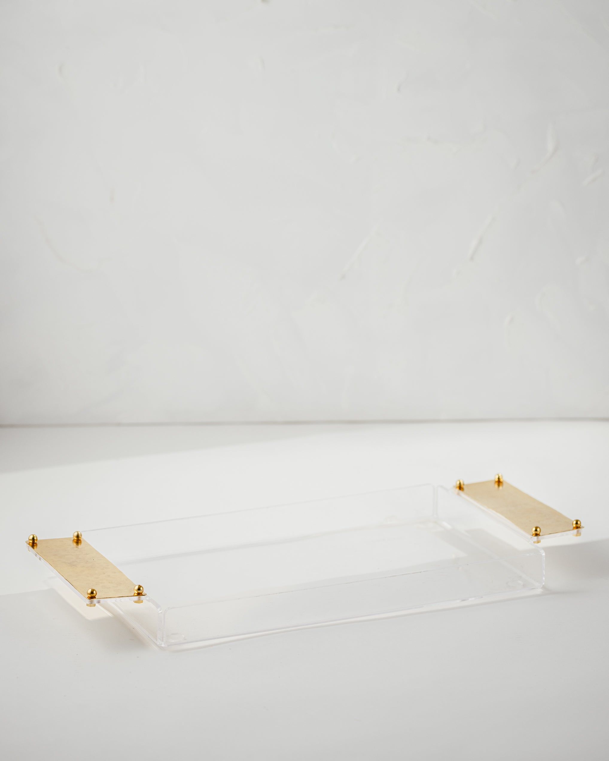 Elevate your hosting experience with the Golden Grace Acrylic Tray. Crafted from high-quality acrylic, this sleek and modern tray is accented with stunning gold-plated hammered brass handles, offering a perfect balance of contemporary design and timeless elegance. The handles’ unique texture adds a touch of sophistication, while the transparent acrylic base allows your tabletop décor to shine through.