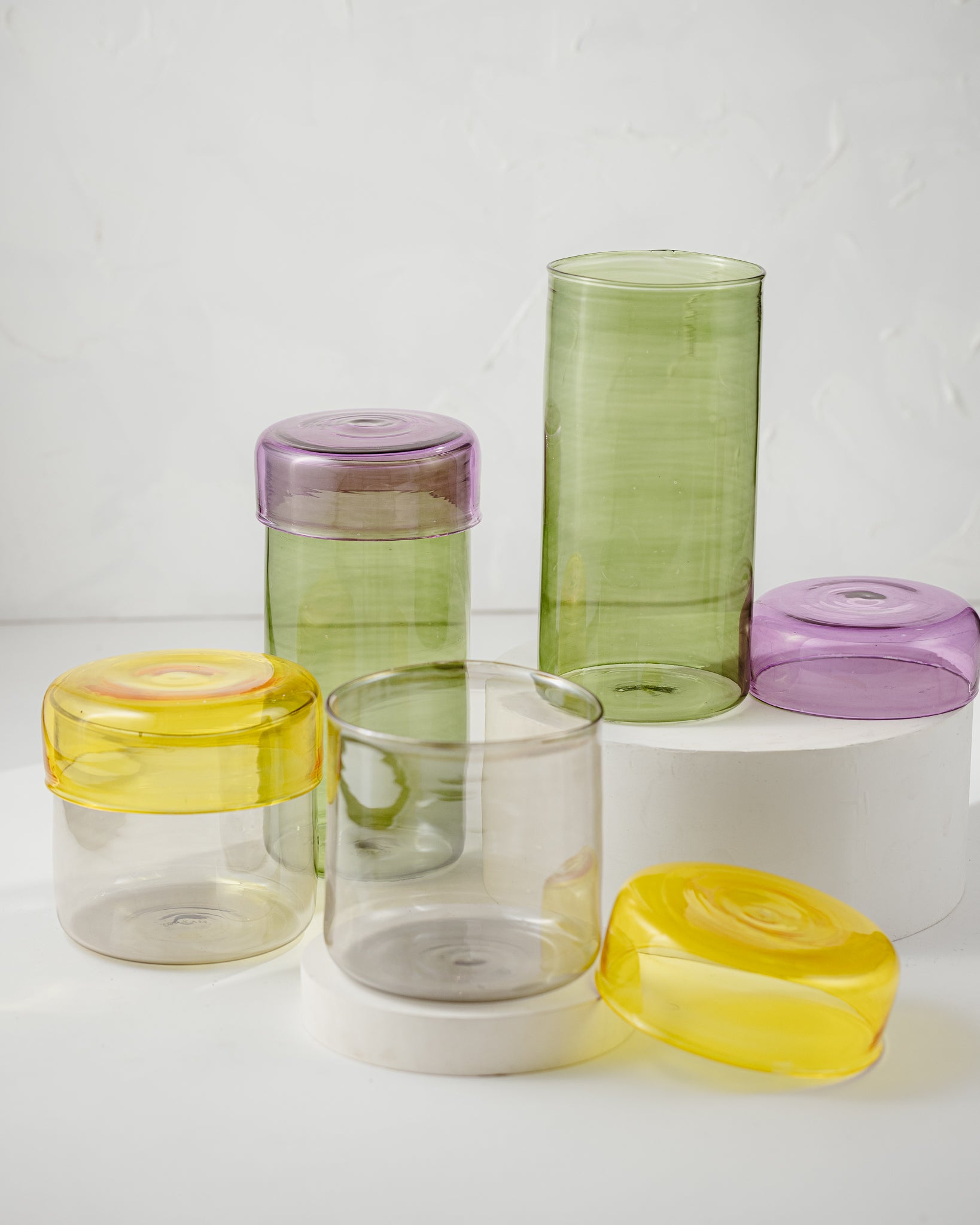 These colored glass jars come with snug lids and are perfect for both storage and decor. Available in complementing vibrant hues, each jar adds a pop of color and a modern touch to your home. With their sleek design and durable materials, they offer both practicality and style, keeping your items fresh while enhancing your styling.