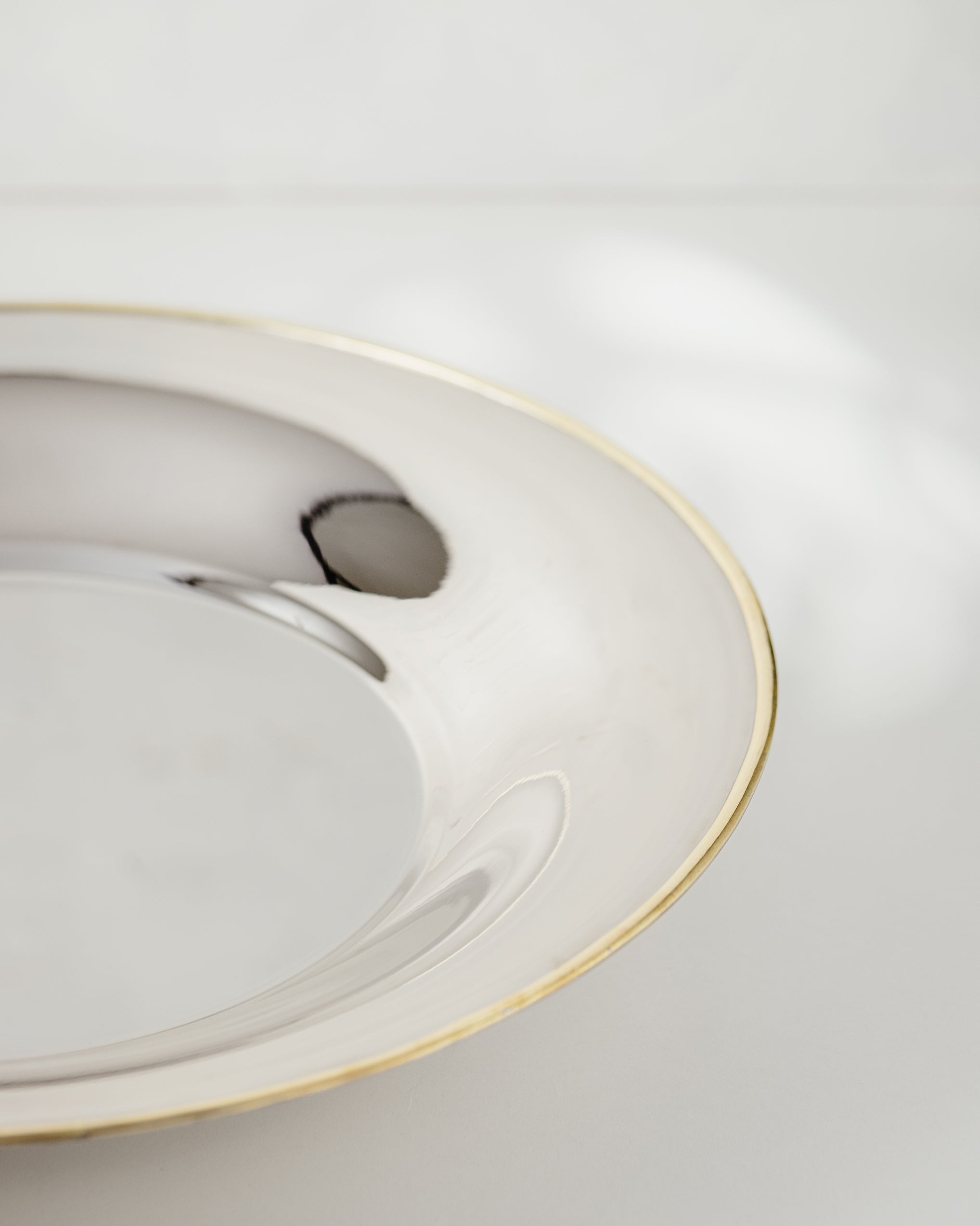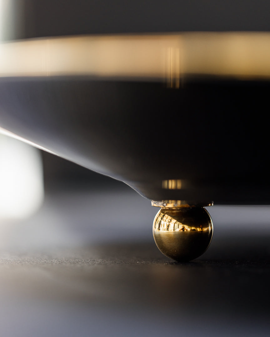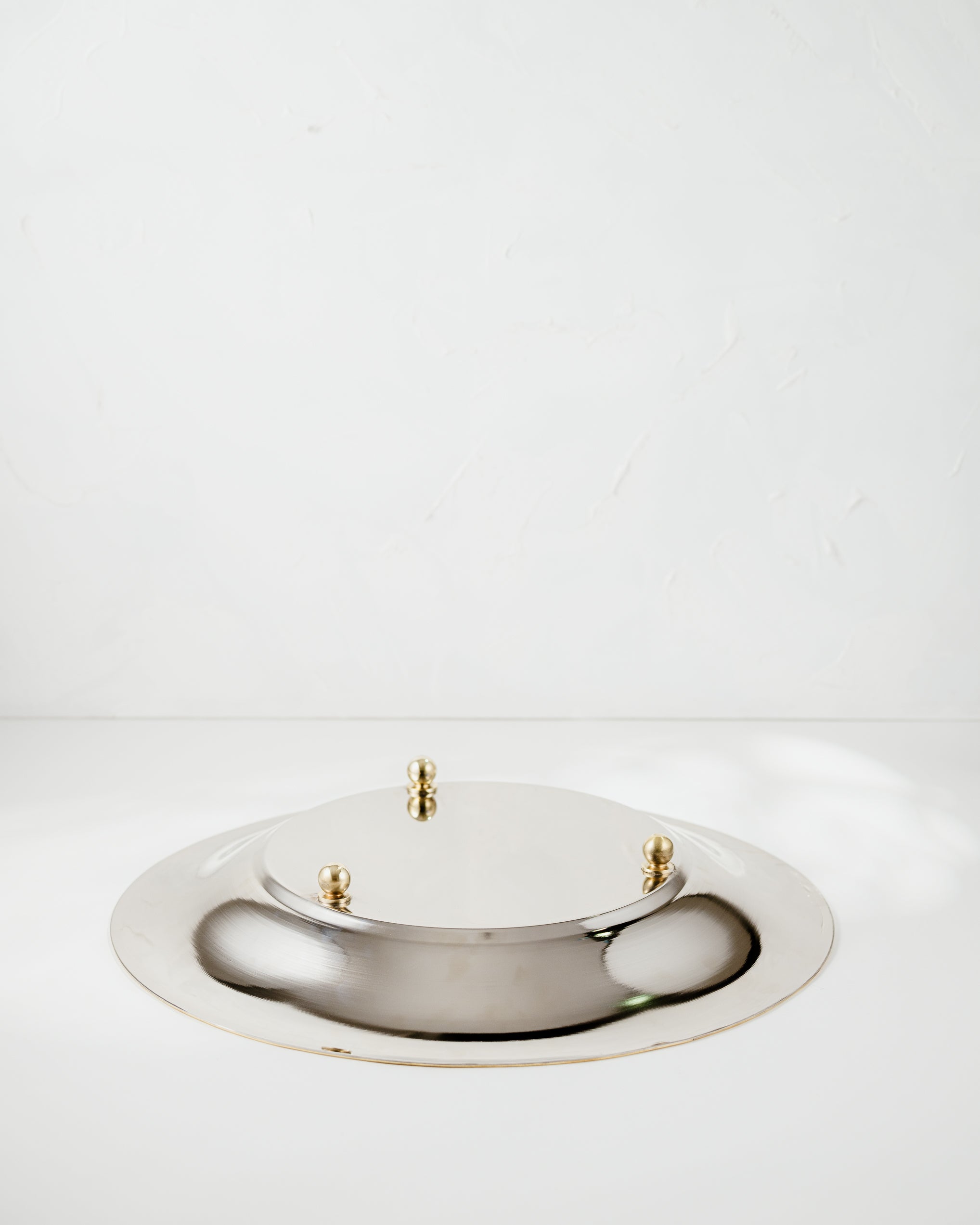 This stunning Stainless Steel Piece features gold brass ornaments, blending modern sophistication with classic luxury. The smooth, reflective surface of the stainless steel contrasts beautifully with the warm, rich tones of the brass details, creating a piece that is as functional as it is visually striking.