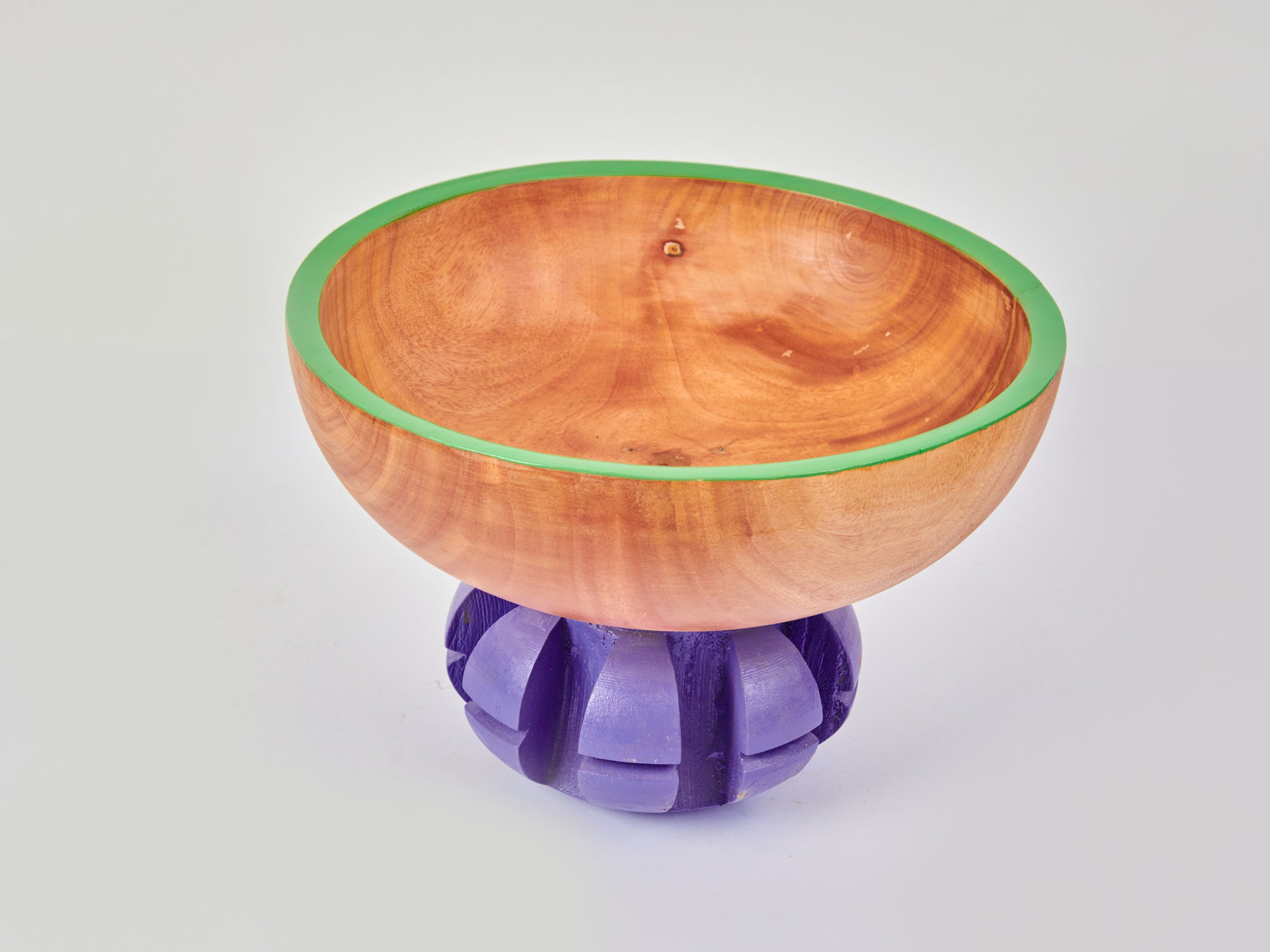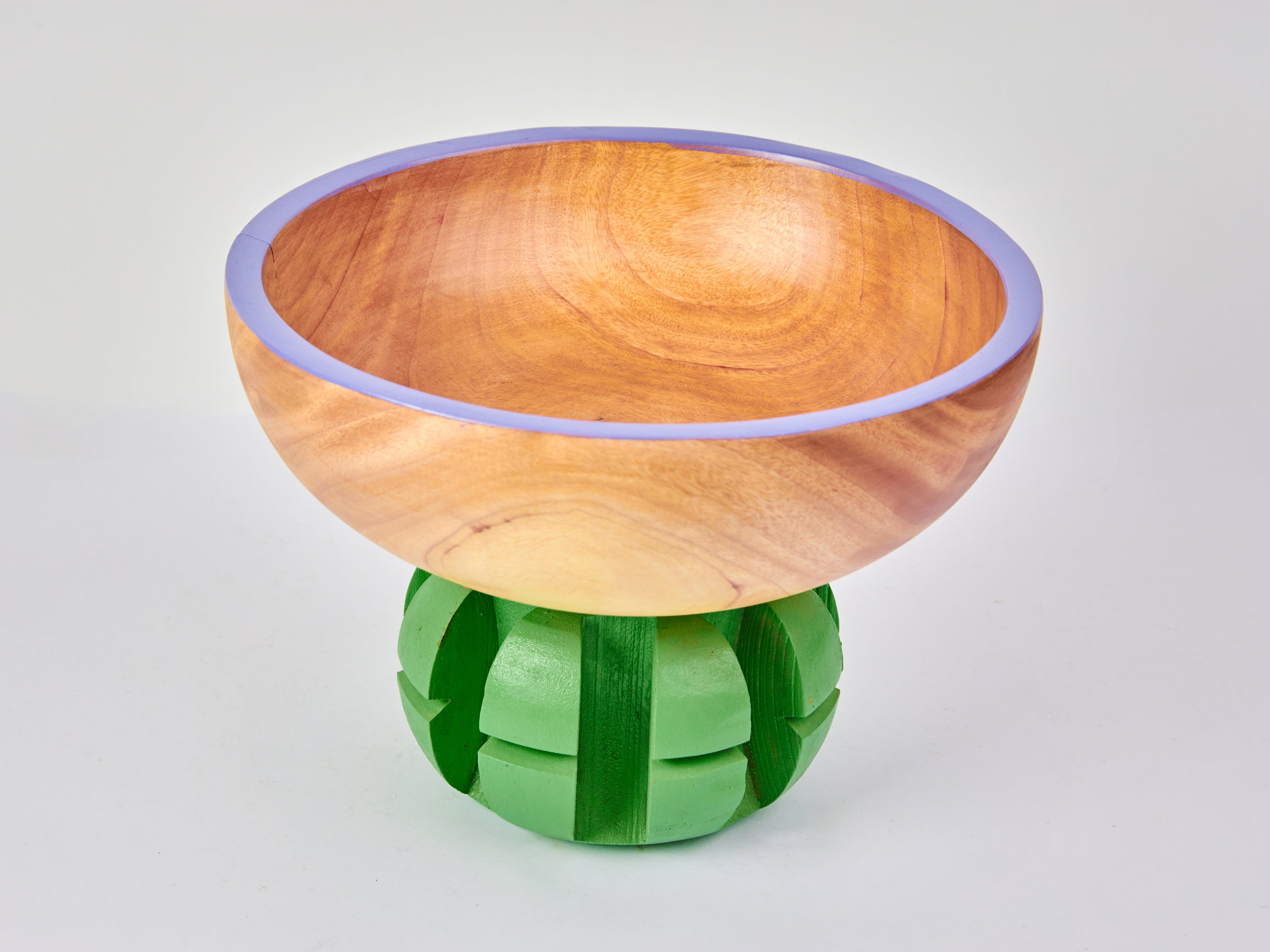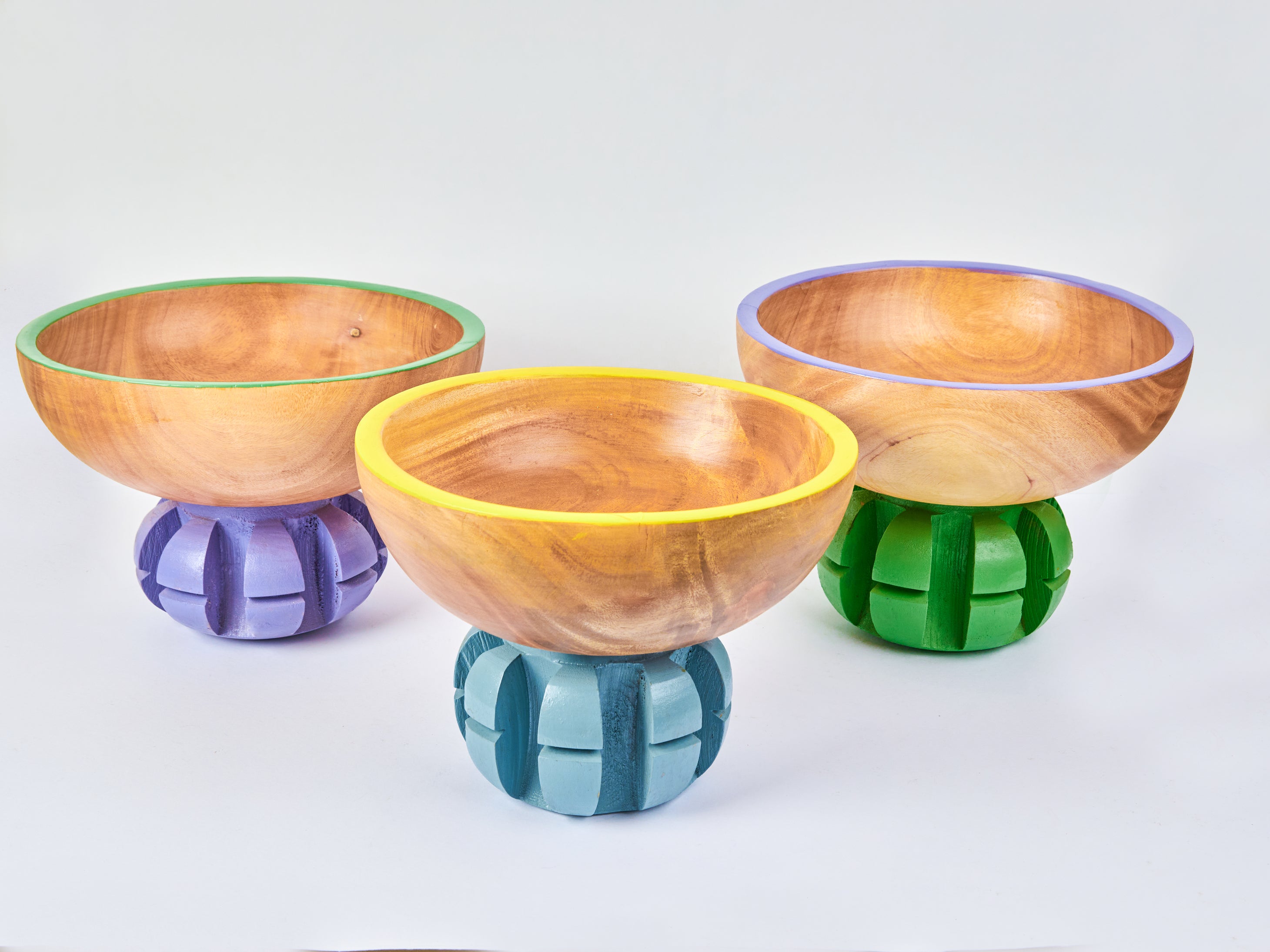 The Parasol Bowl with Stand is a perfect blend of craftsmanship and vibrant elegance. Handmade from wood, the bowl sits atop a hand-painted wood stand, available in a variety of lively colors. Its unique design and colorful finish make it a striking decorative accent or serving piece in any space.