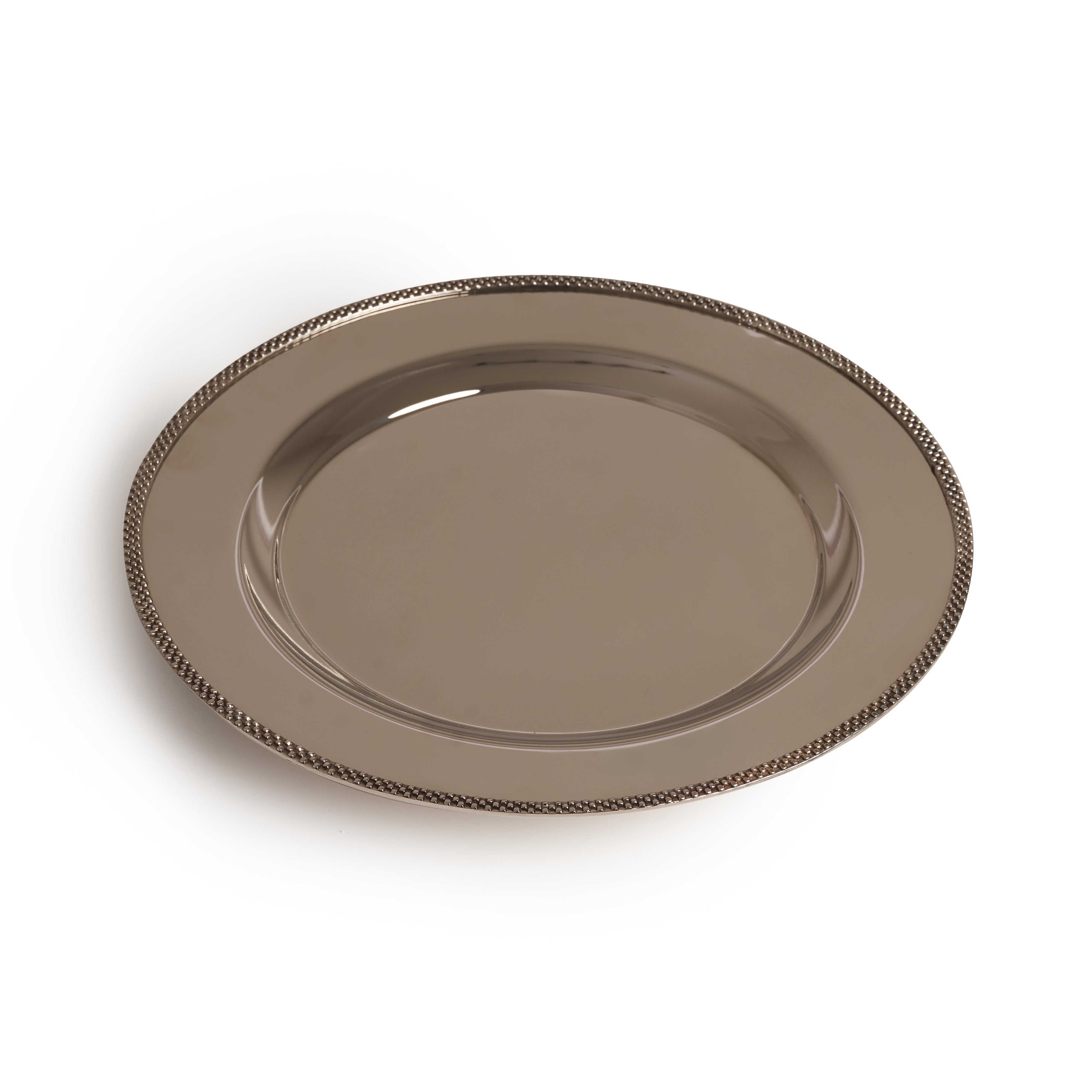 Elegant in form and timeless in design, the Silver Line round tray is crafted from sleek stainless steel and framed with a refined brass border that adds warmth and sophistication. Its smooth circular silhouette paired with a delicate beaded edge makes it ideal for graceful serving and stylish presentation.