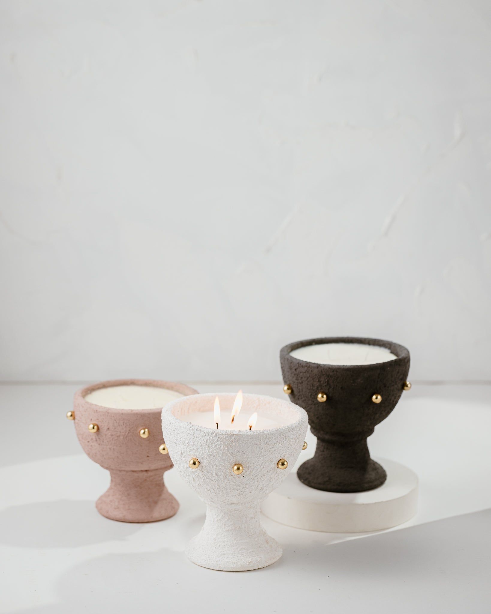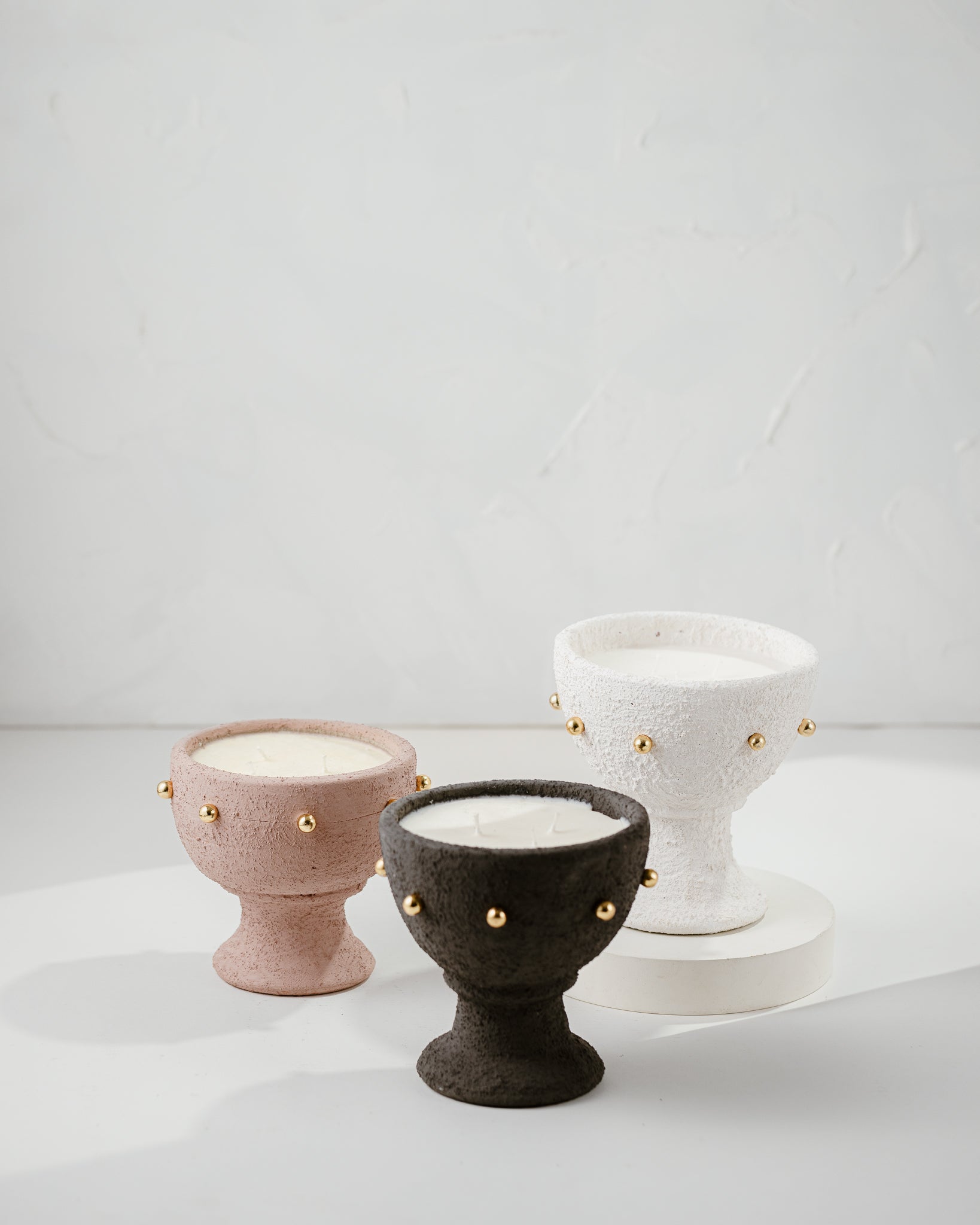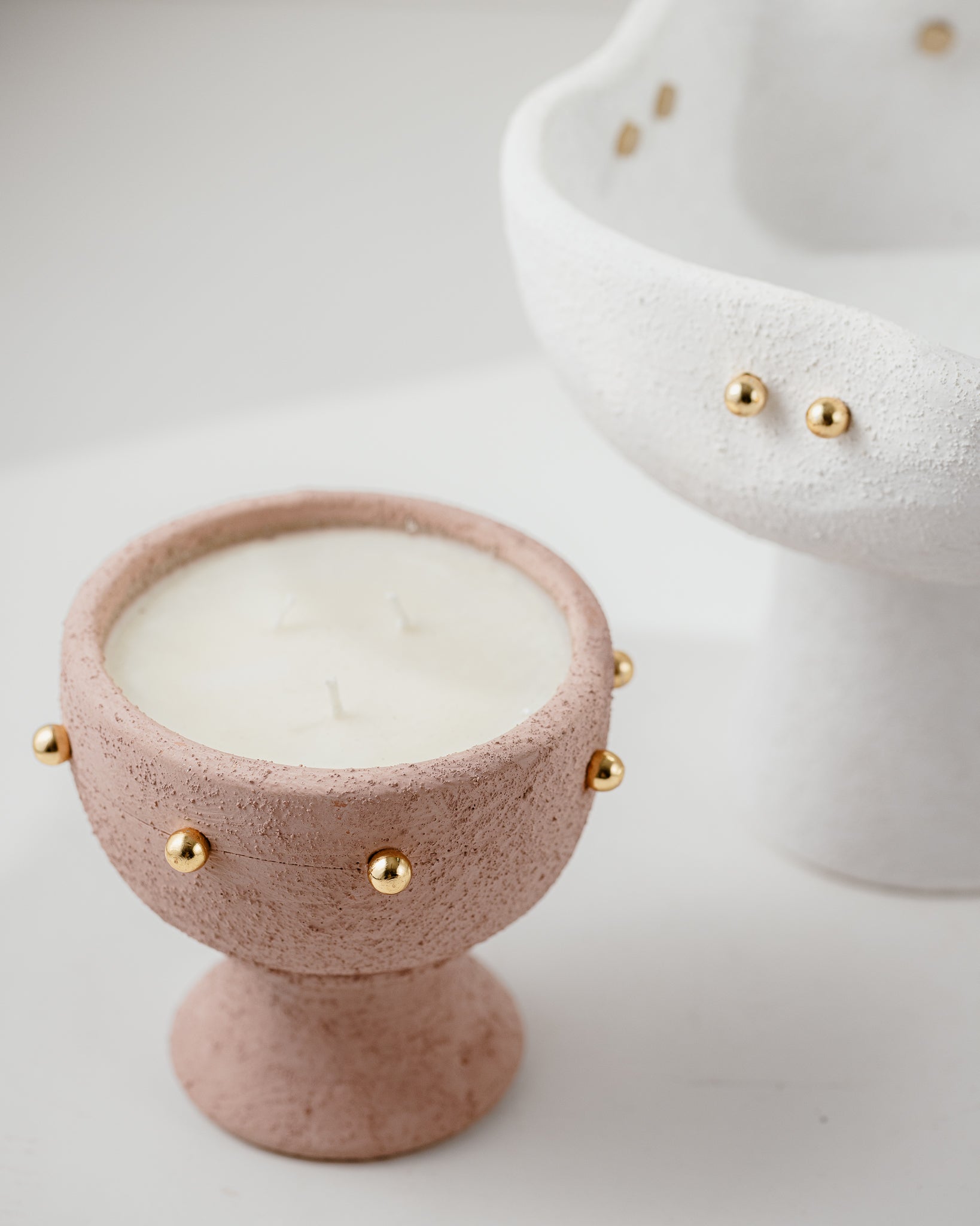A luxurious blend of artistry and fragrance. Made from high-quality pottery and adorned with exquisite brass gold-plated pins, this candle is as much a piece of decor as it is a sensory experience.