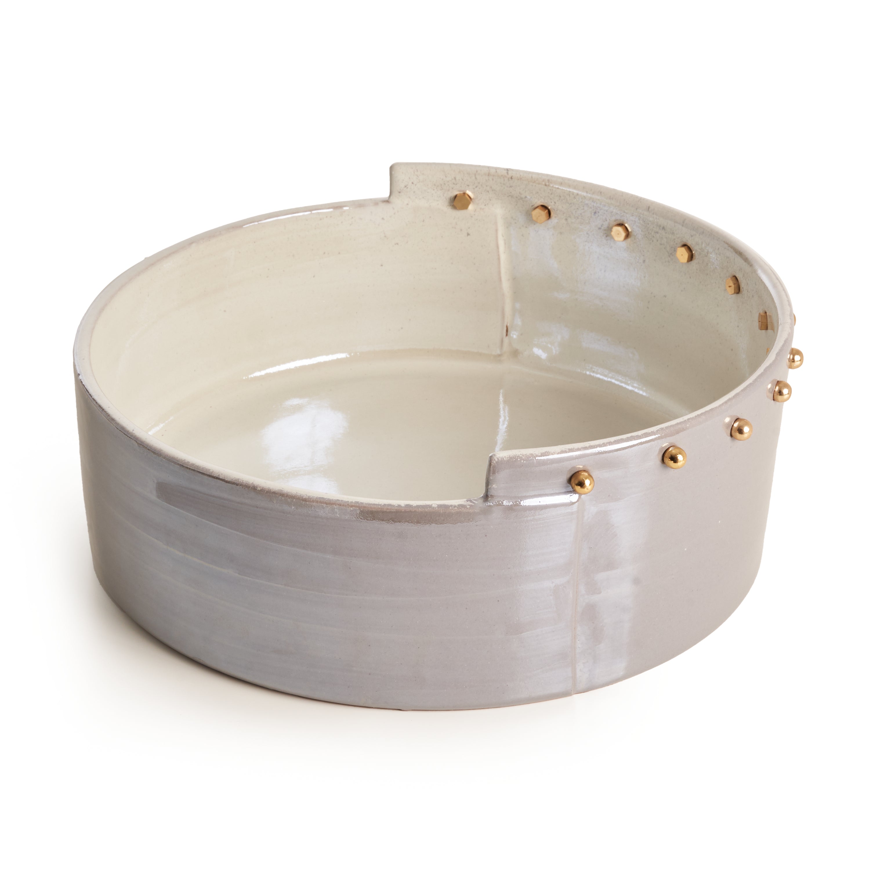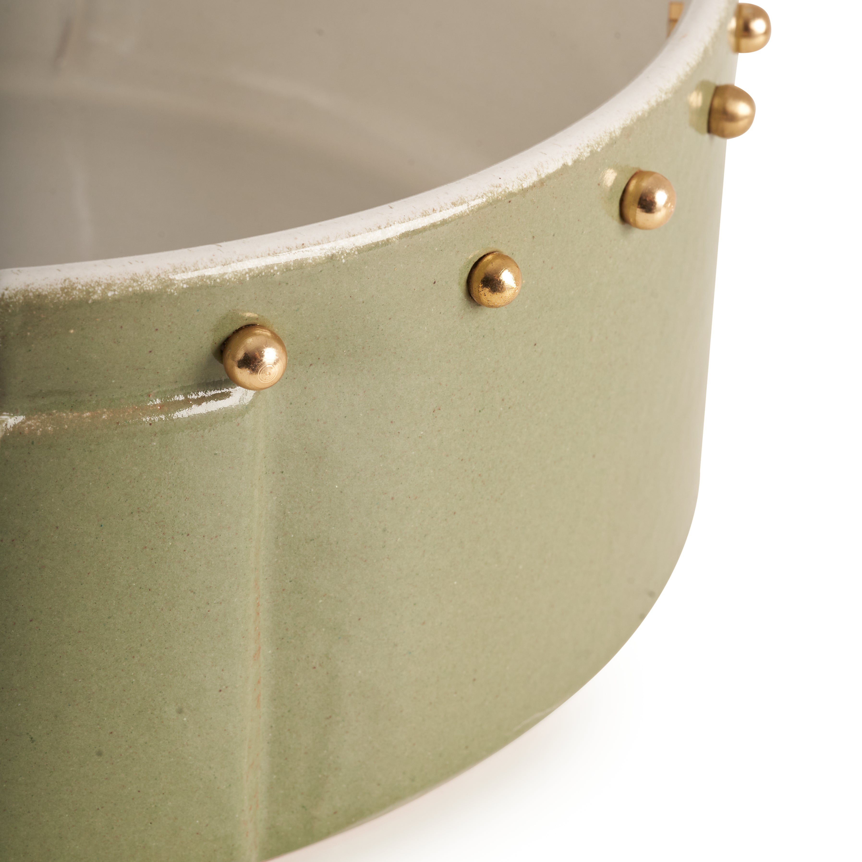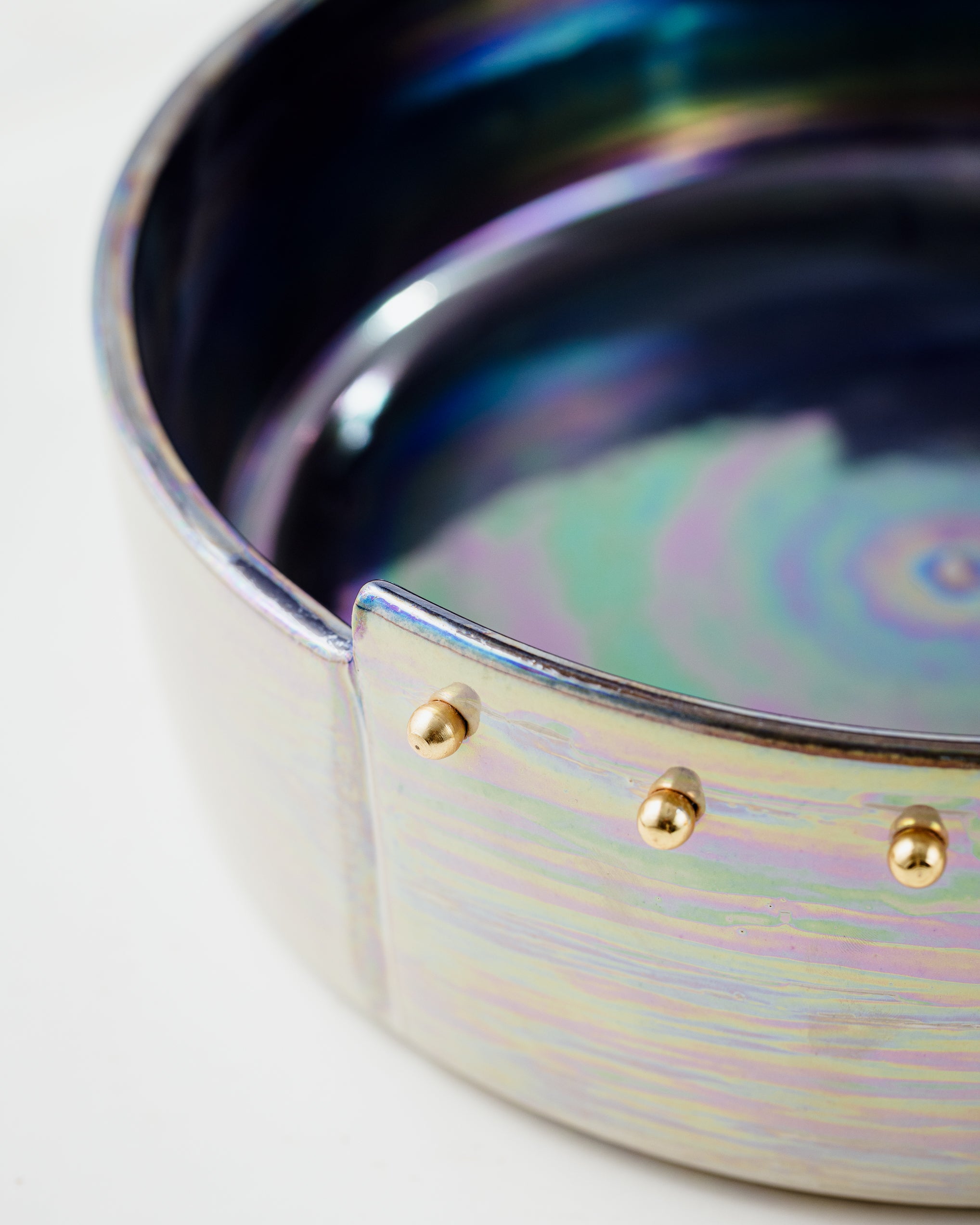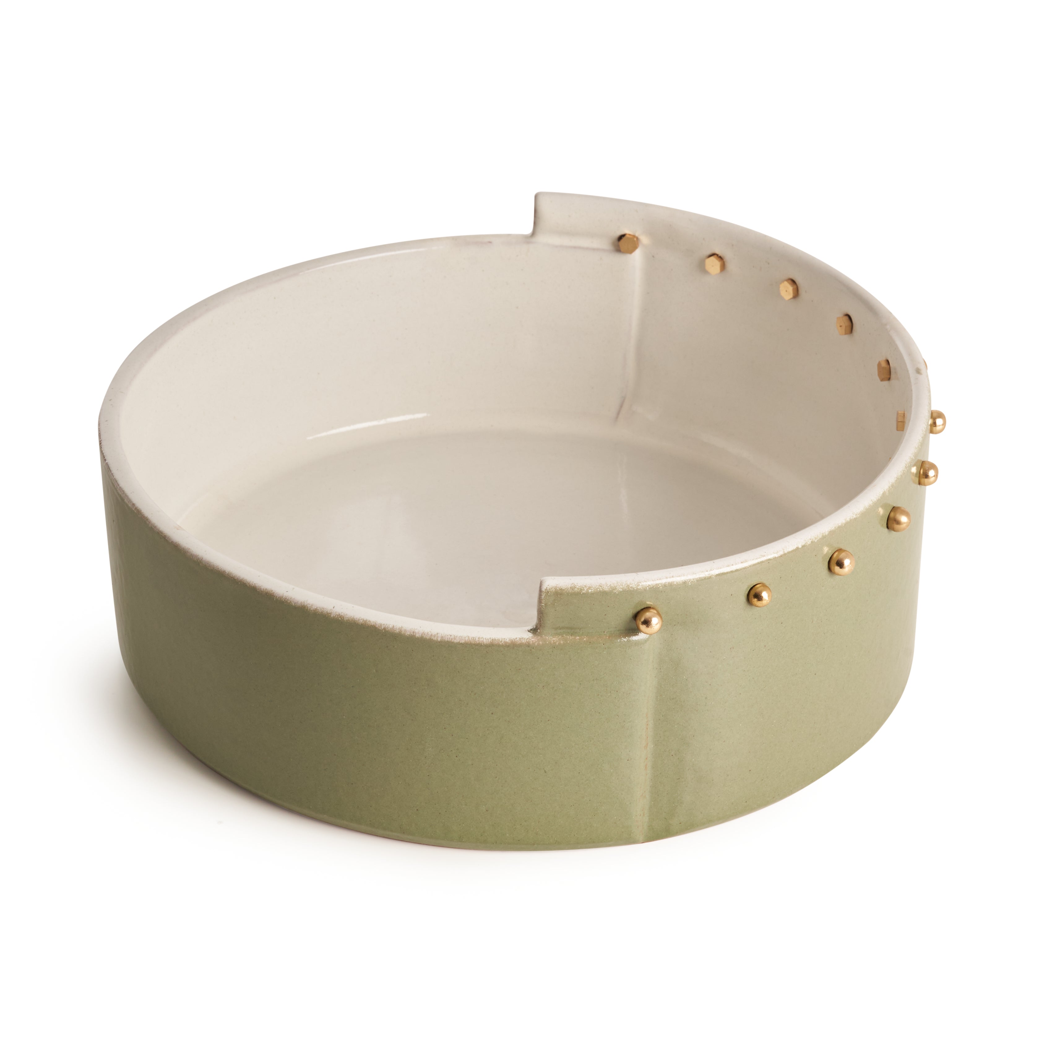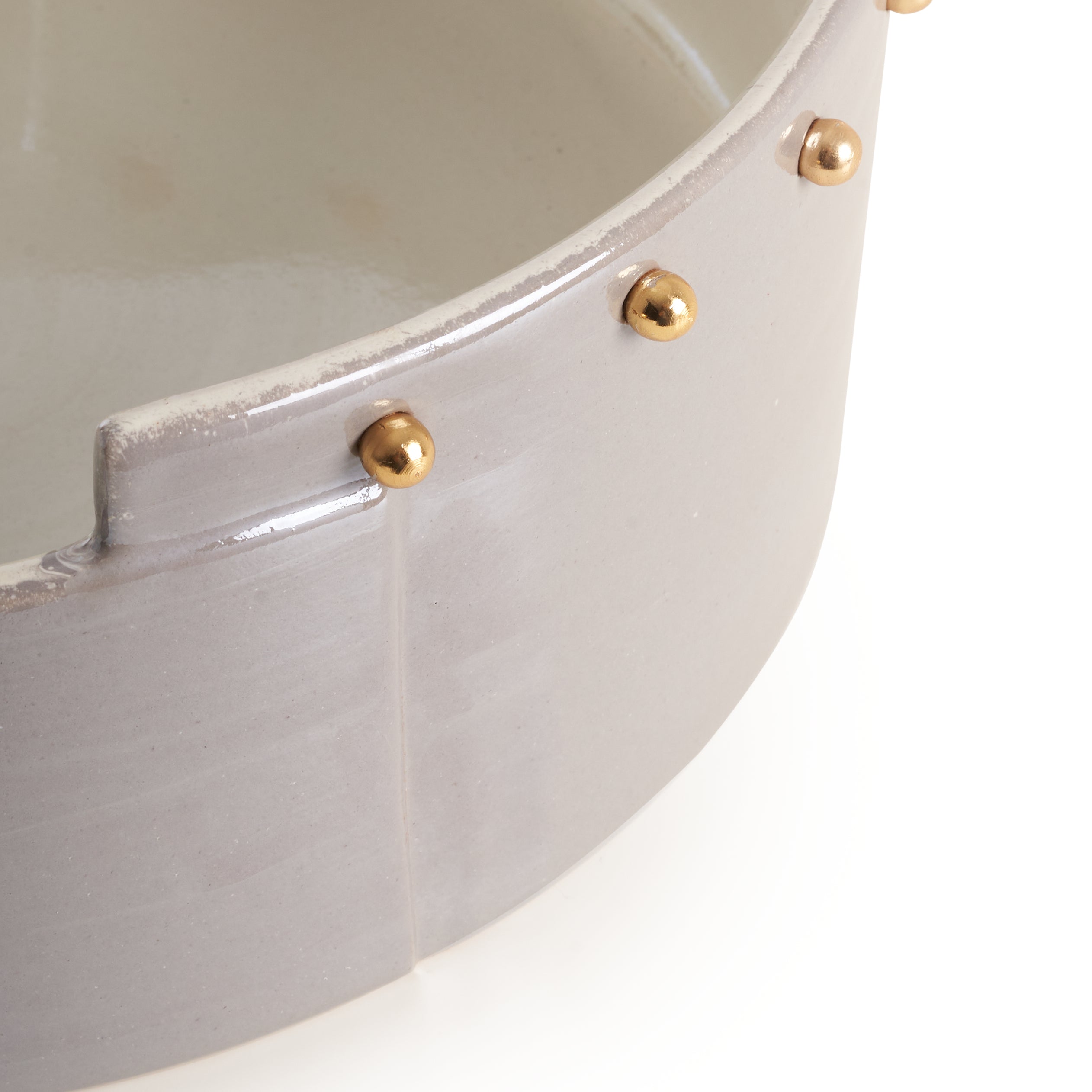 The Pinara Bowl blends handcrafted pottery with elegant gold-plated brass pins, creating a sophisticated and modern design. Its organic texture and metallic accents make it a striking centerpiece, ideal for both serving salads, pastas, fruits, or even as a decorative centerpiece for snacks and appetizers. Its versatile design makes it perfect for both casual gatherings and formal occasions.