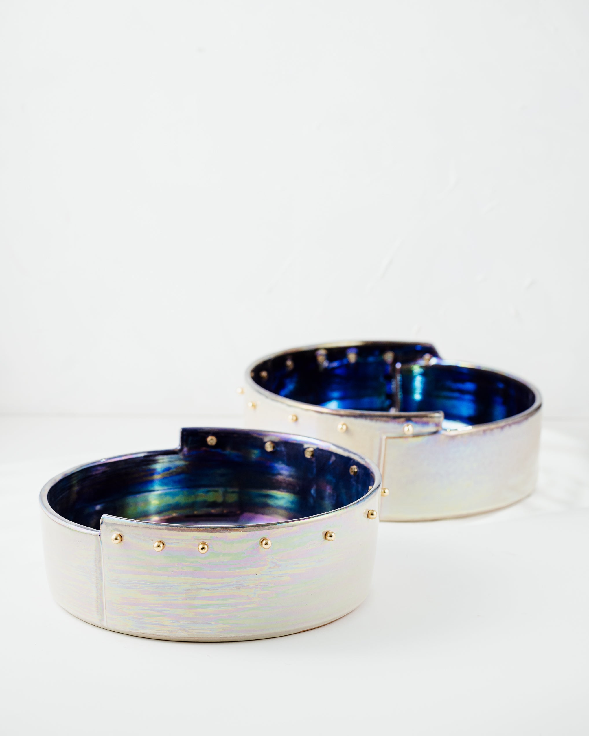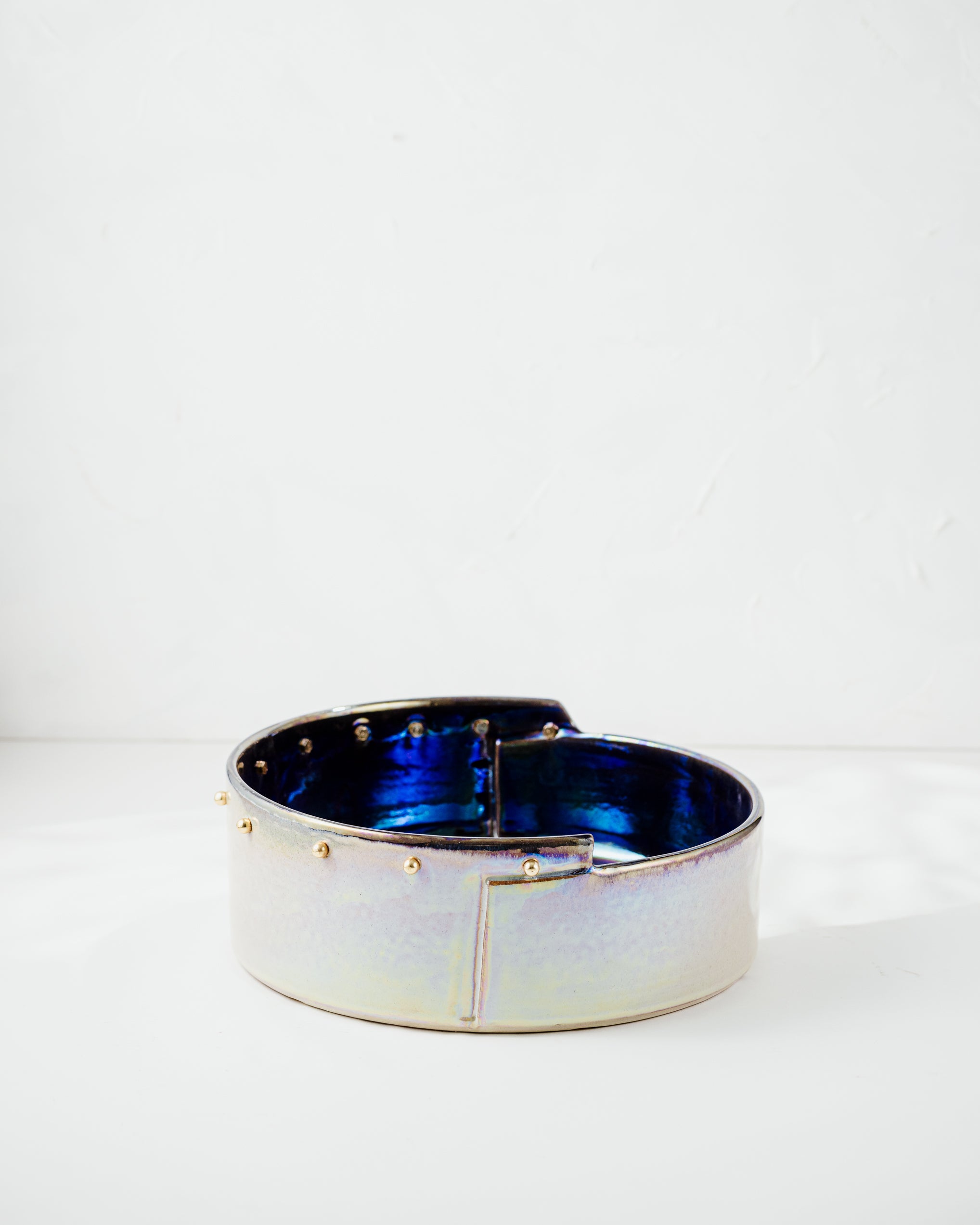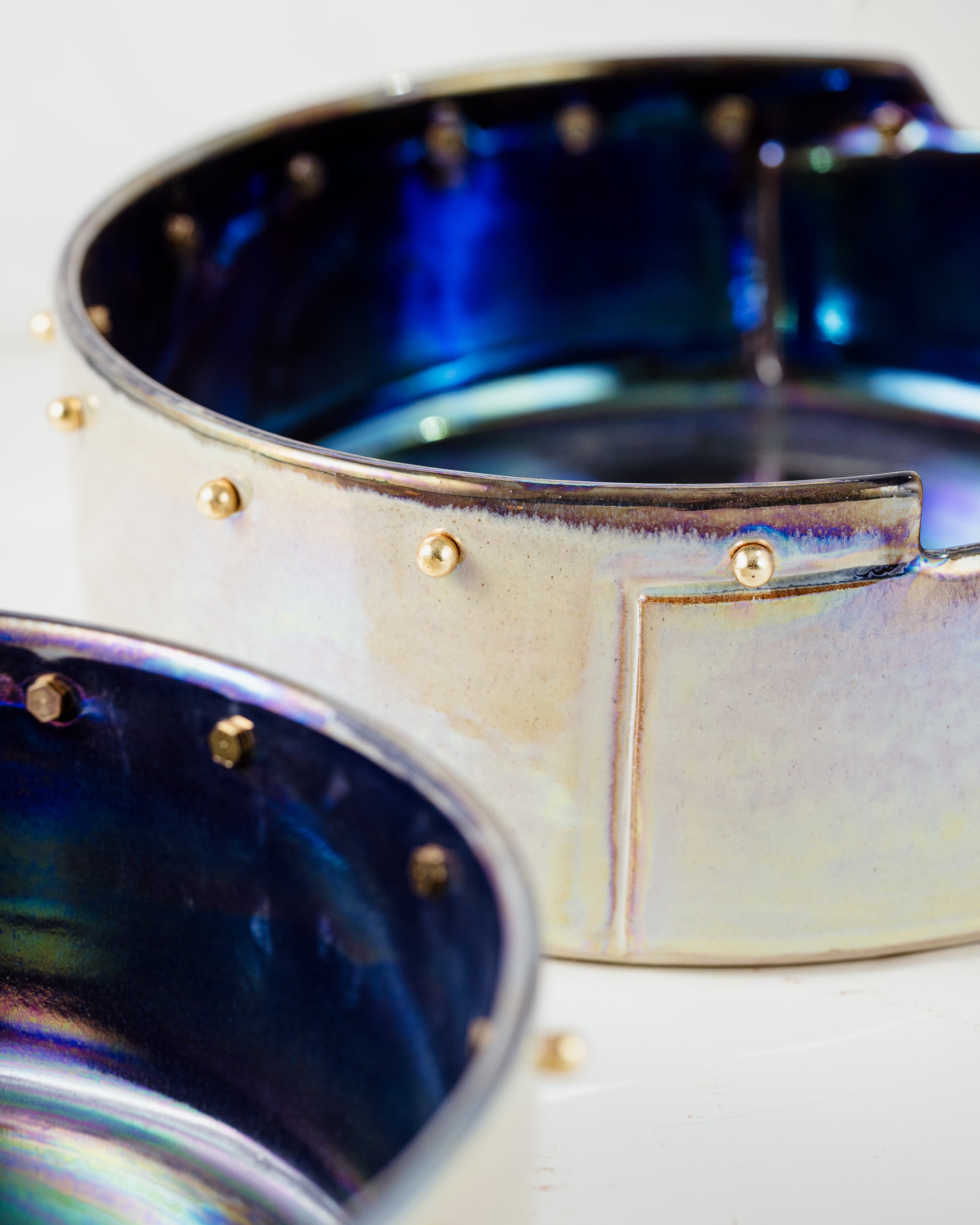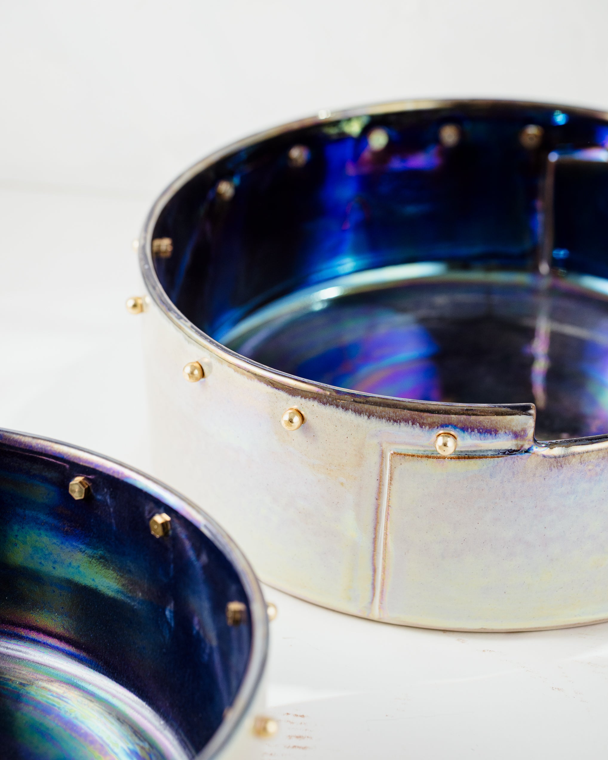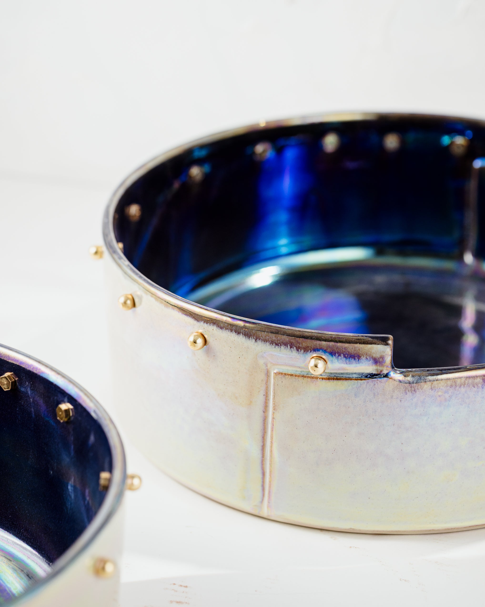 The Pinara Bowl blends handcrafted pottery with elegant gold-plated brass pins, creating a sophisticated and modern design. Its organic texture and metallic accents make it a striking centerpiece, ideal for both serving salads, pastas, fruits, or even as a decorative centerpiece for snacks and appetizers. Its versatile design makes it perfect for both casual gatherings and formal occasions.