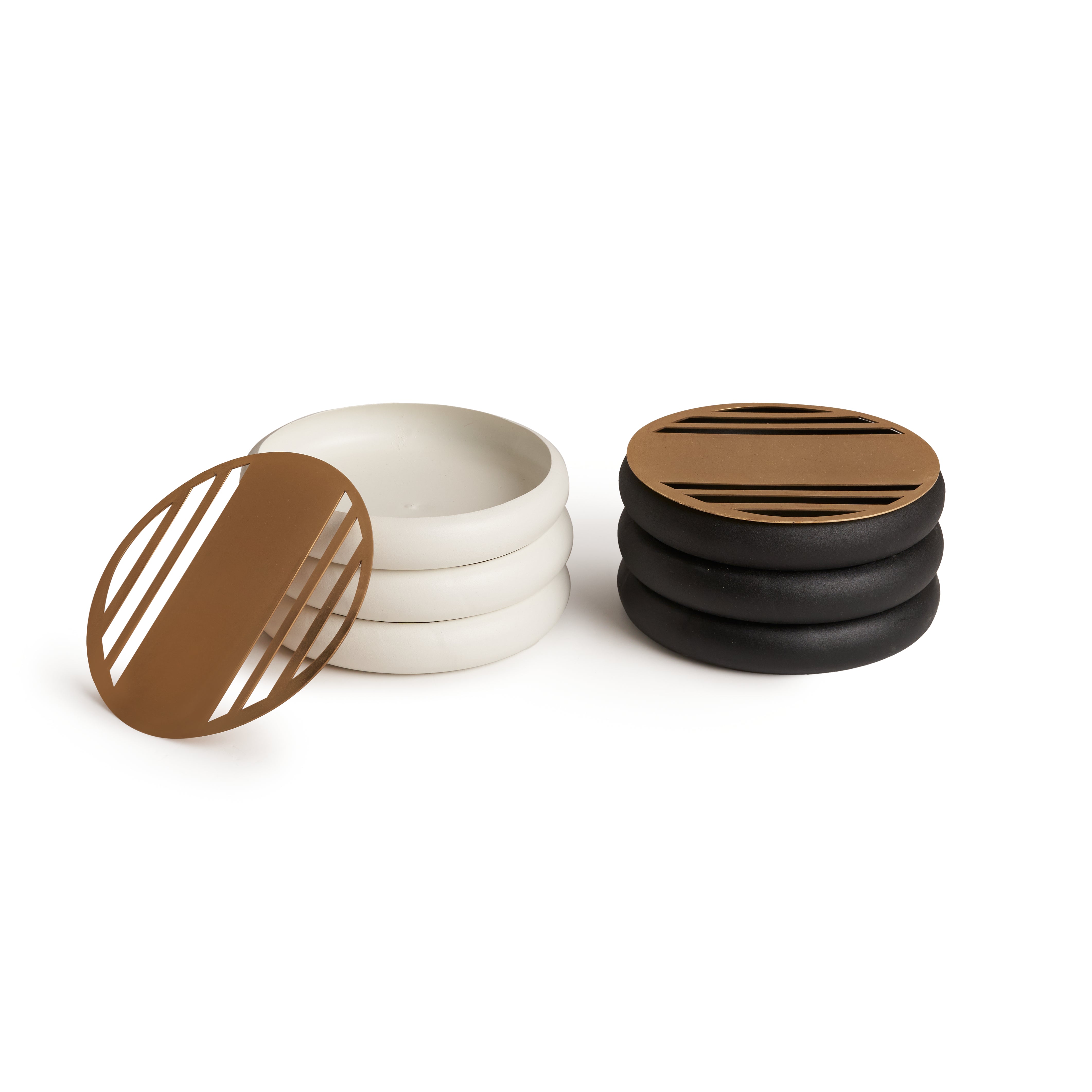 Available in white and black, its minimalist form blends effortlessly into modern and classic interiors alike. The layered base design not only enhances its visual appeal but also provides stability and heat resistance during use.