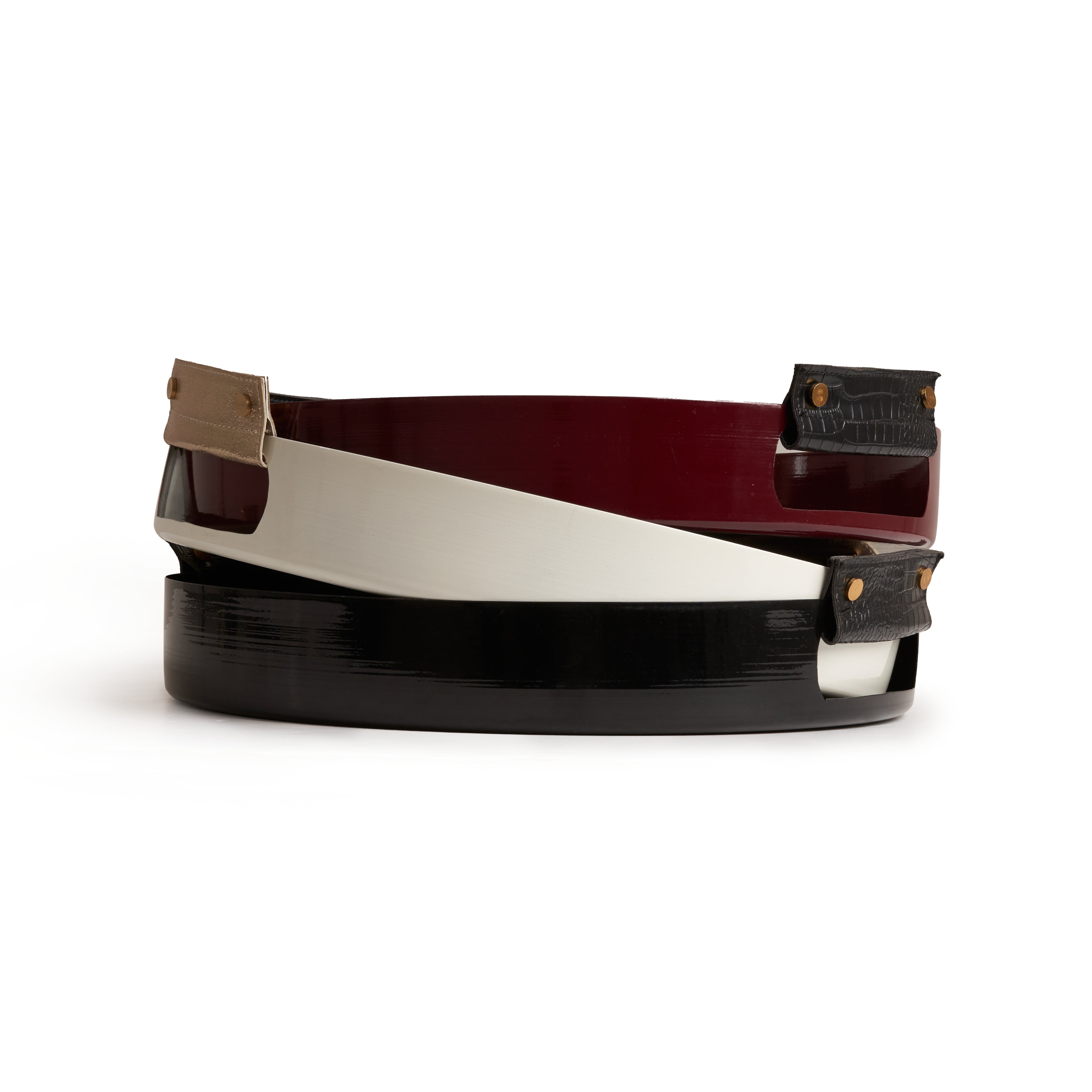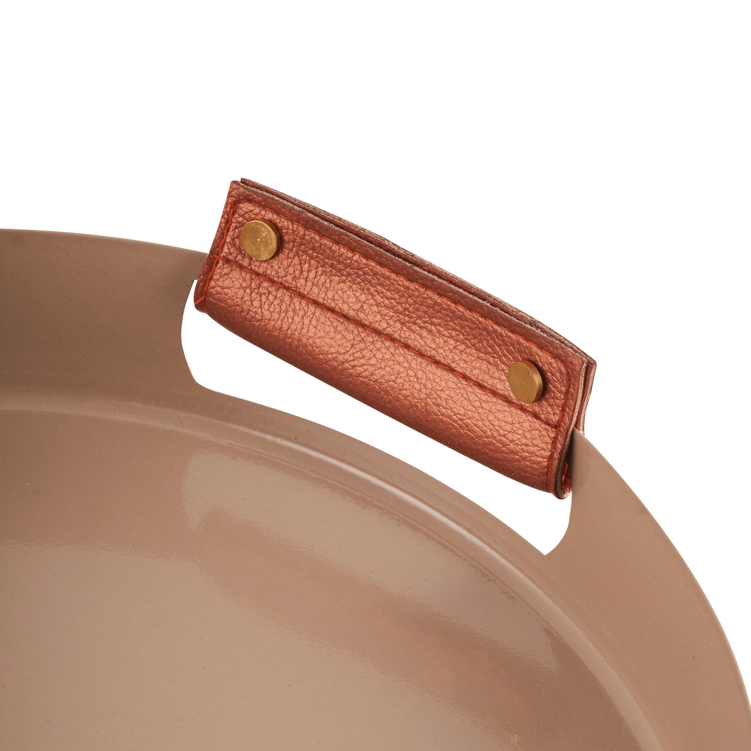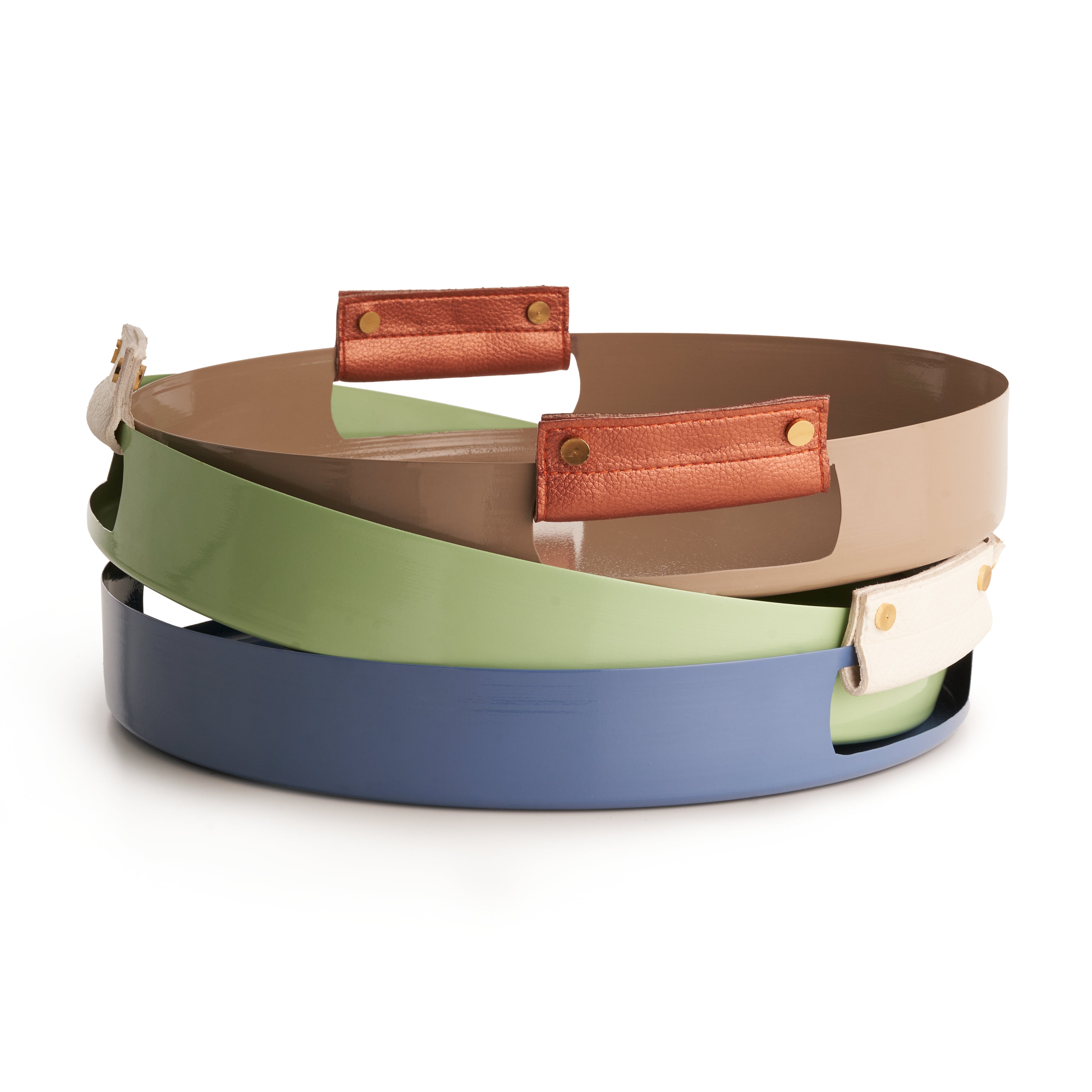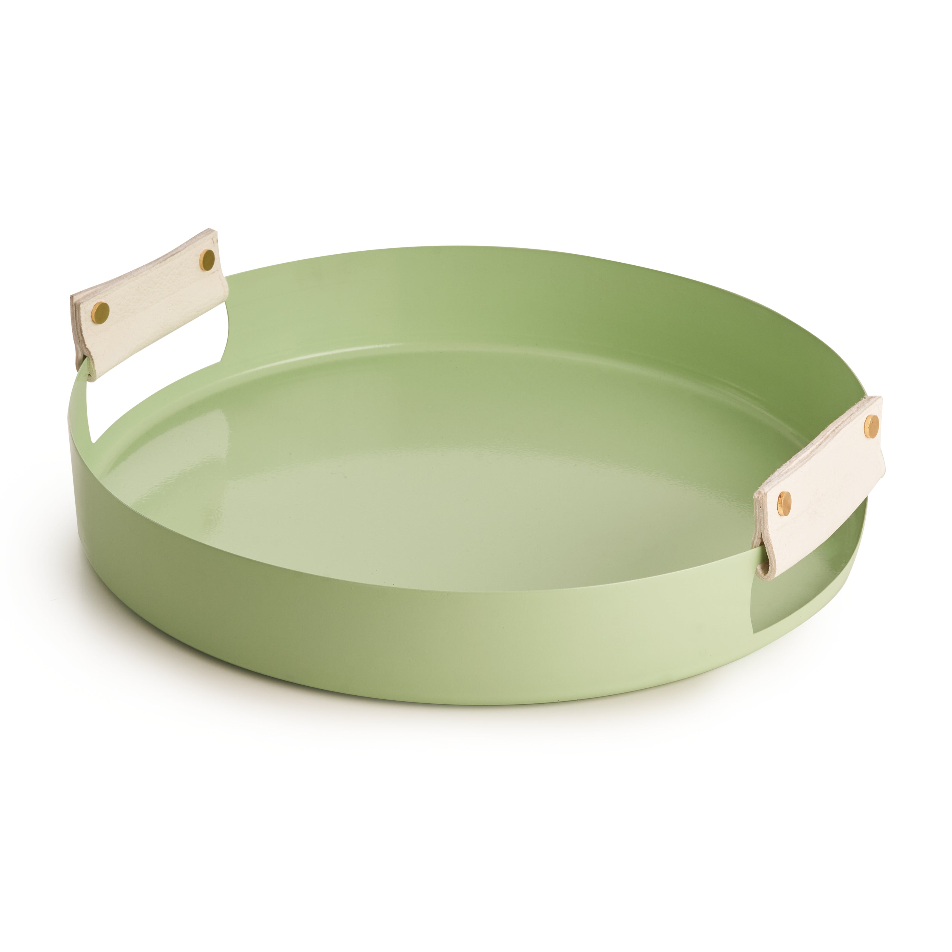 Elevate your space with the elegant Halo Tray — a round metal tray designed with both style and function in mind. Featuring premium leather handles and accented with brass gold-plated pins, this tray brings a touch of sophistication to any setting. Perfect for serving or decor.